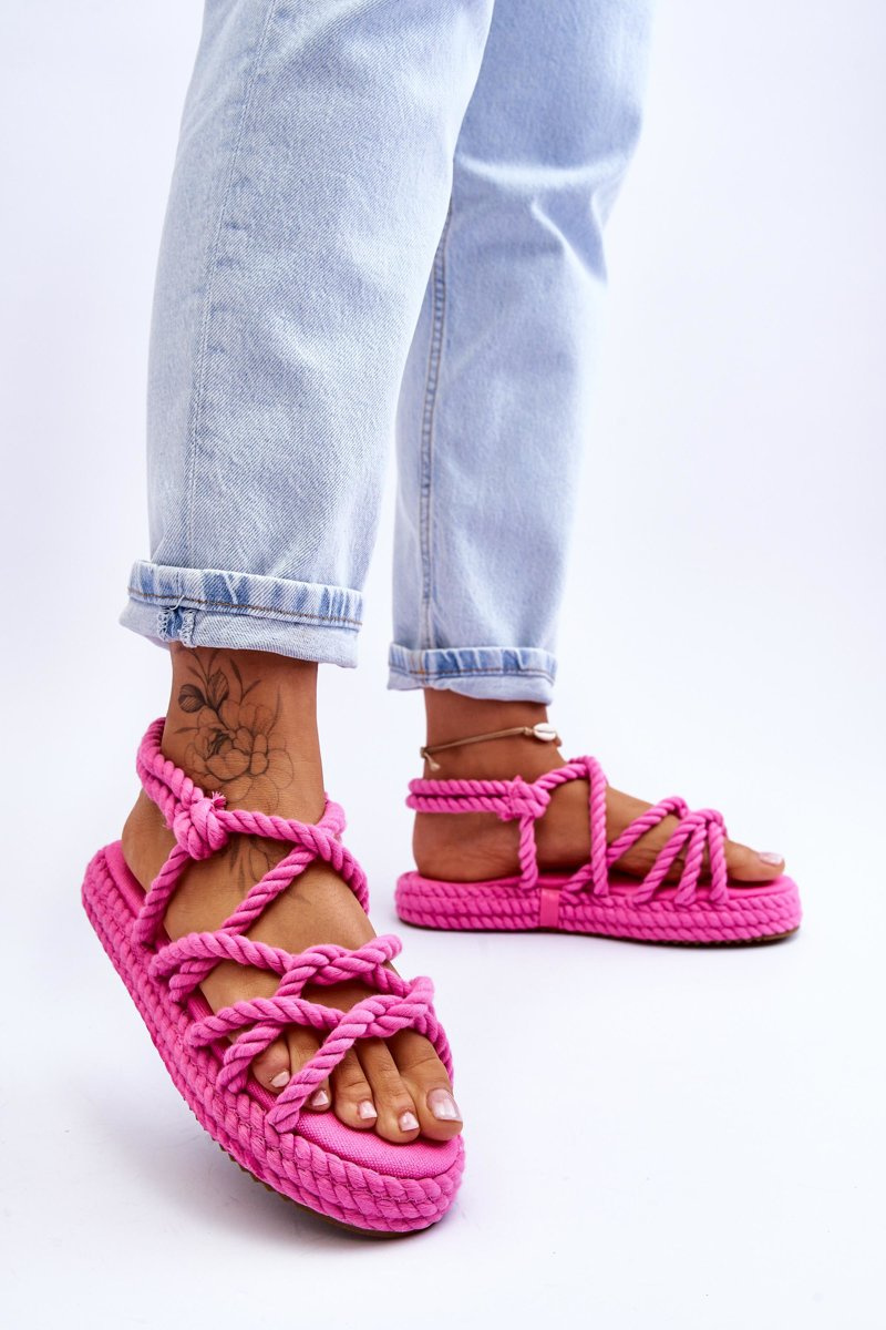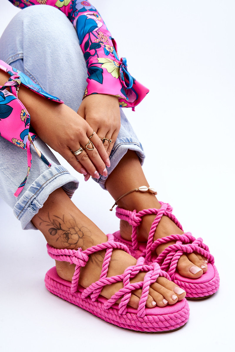 Жіночі модні плетені босоніжки кольору фуксії Tiffanie