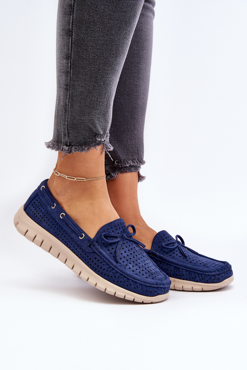 Ажурні мокасини - відмінний вибір для майбутнього весняно-літнього сезону! Виготовлені з якісної еко-замші, виглядають елегантно та стильно. Їх унікальний дизайн робить їх чудовим поєднанням для багатьох літніх укладок, додаючи їм вишуканого шарму. Встановлені на легку платформу, не тільки надають їм модний вигляд, але й забезпечують додатковий комфорт під час ходьби. М'яка устілка з натуральної шкіри ідеально прилягає до стопи, забезпечуючи комфорт протягом усього дня. Обираючи розмір, орієнтуйтеся на таблицю розмірів.