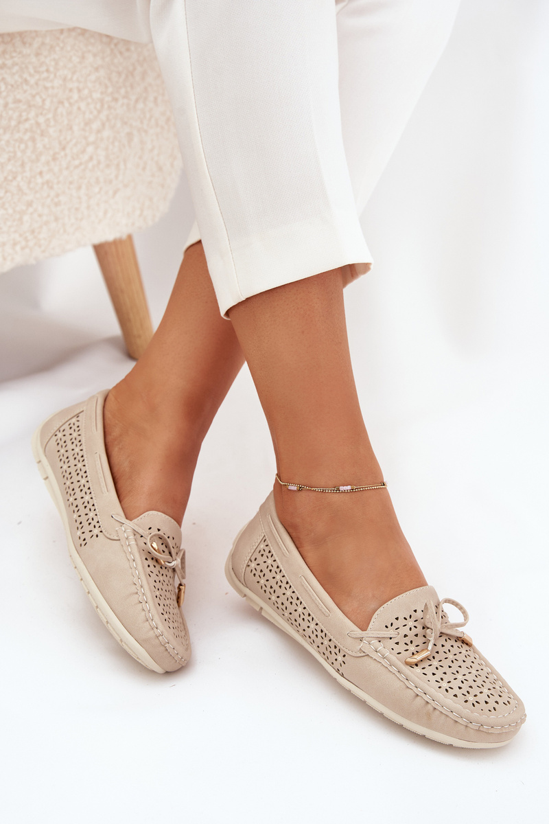 Жіночі мокасини з перфорованим візерунком і шнурівкою бежеві Mirisa
