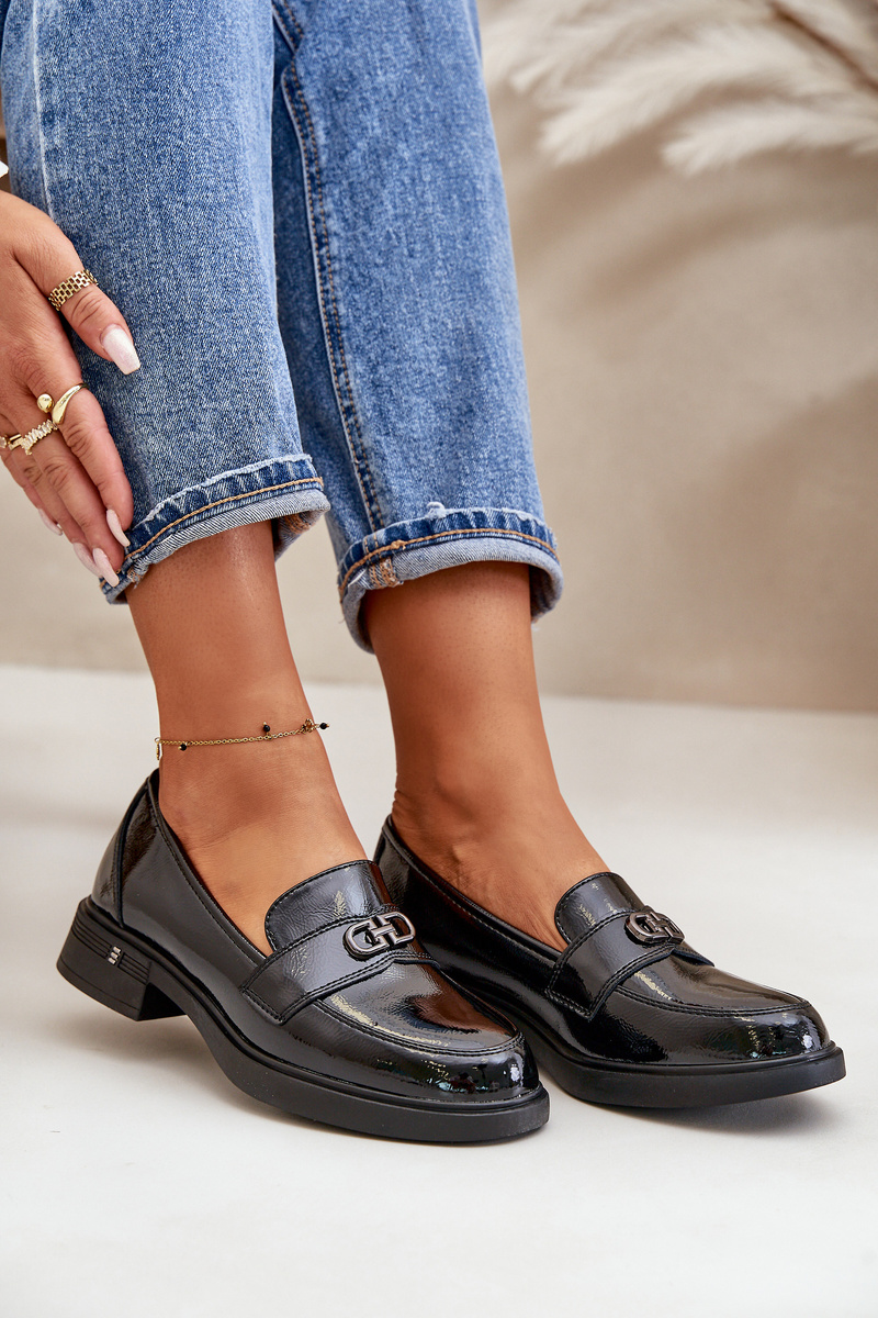 Жіночі мокасини лаковані з натуральної шкіри чорні Vinceza 58409