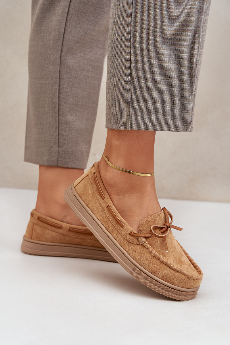 Жіночі мокасини з еко замші - це класичний та зручний варіант на кожен день. Встановлені на плоскій підошві, вони забезпечують комфорт носіння протягом усього дня. Спереду прикрашені тонким бантом, який надає їм чарівності та жіночності. Ця модель є ідеальним вибором для жінок, які цінують комфорт у поєднанні з ніжним модним акцентом. Будь ласка, зверніться до розмірної сітки при виборі розміру.