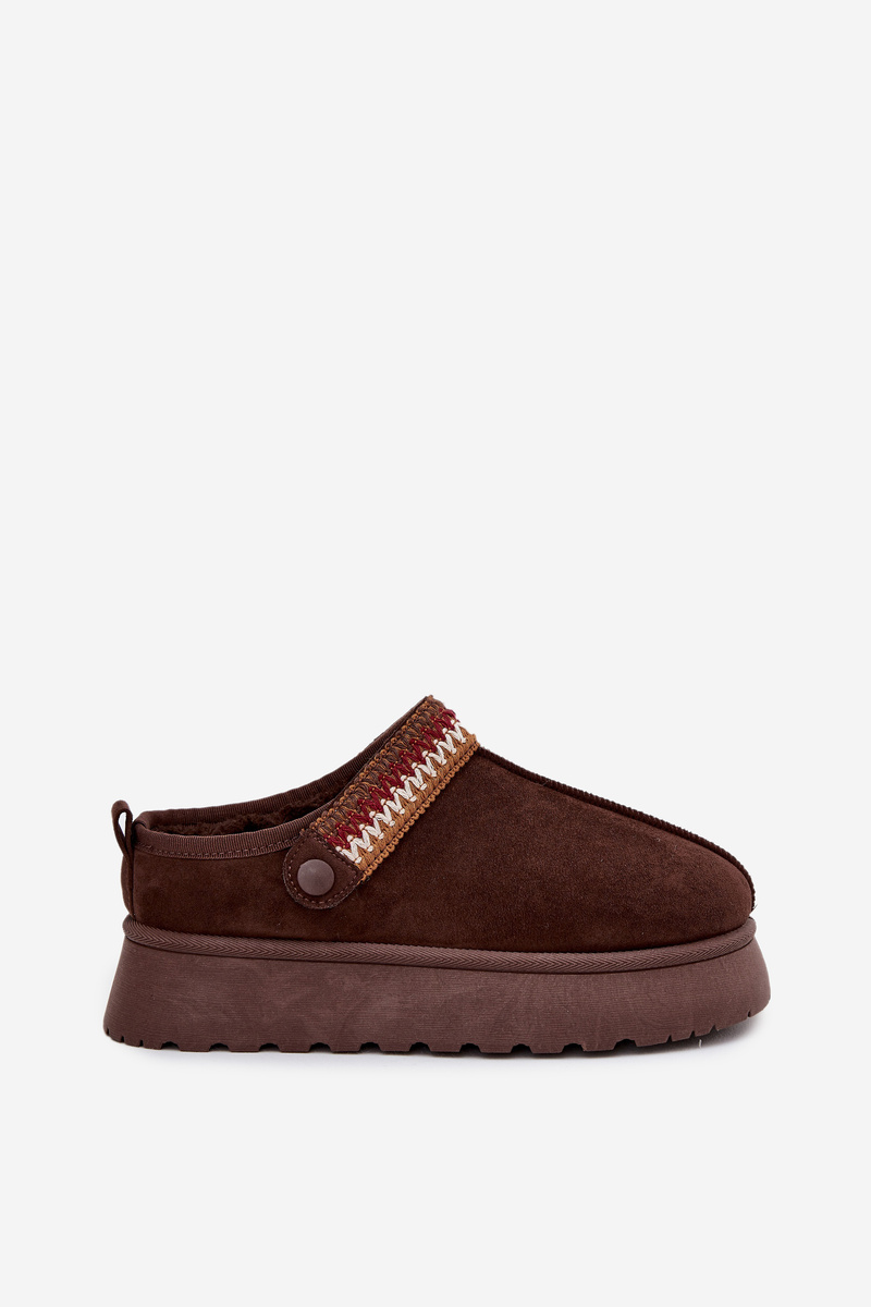 Жіночі низькі зимові черевики з рухомим ремінцем і вишивкою на платформі шоколадні Lyrisse