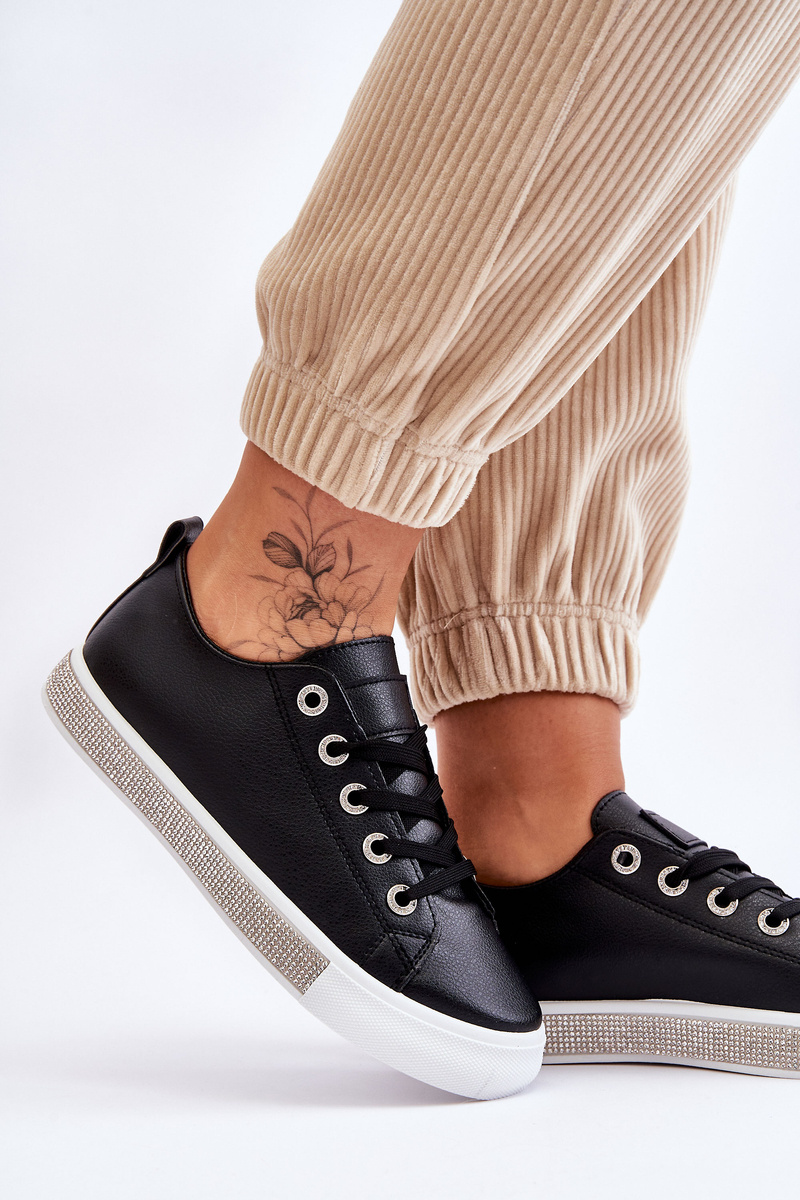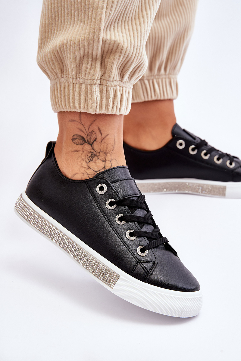 Низькі кросівки - модель поза часом, тож обов'язково їх мати у своєму гардеробі! З ними можна створити багато цікавих стилів. Вони пасують як до джинсів, так і до повітряних суконь. Виготовлена з еко шкіри з модним декором на платформі у вигляді страз, що імітують стрази. Мають м'яку вставку, яка знімається. Обираючи розмір, орієнтуйтеся на таблицю розмірів.
