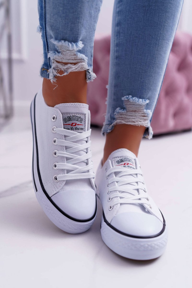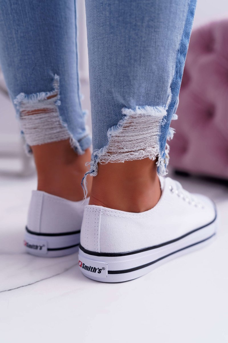 Чудові жіночі кросівки. Повністю виготовлений з текстильного матеріалу. Класична модель з гумовим підноском. Збоку на черевиках ви також знайдете два додаткових вушка, які підкреслюють їх класичний крій, а також забезпечують кращу вентиляцію для стопи. Бренд Smith's з нами на ринку вже давно, і його моделі завжди користуються популярністю завдяки високій якості виготовлення та завжди актуальному стилю. Під час вибору розміру запропонуйте таблицю розмірів, доступну після наведення курсора на розмір або натискання на нього.