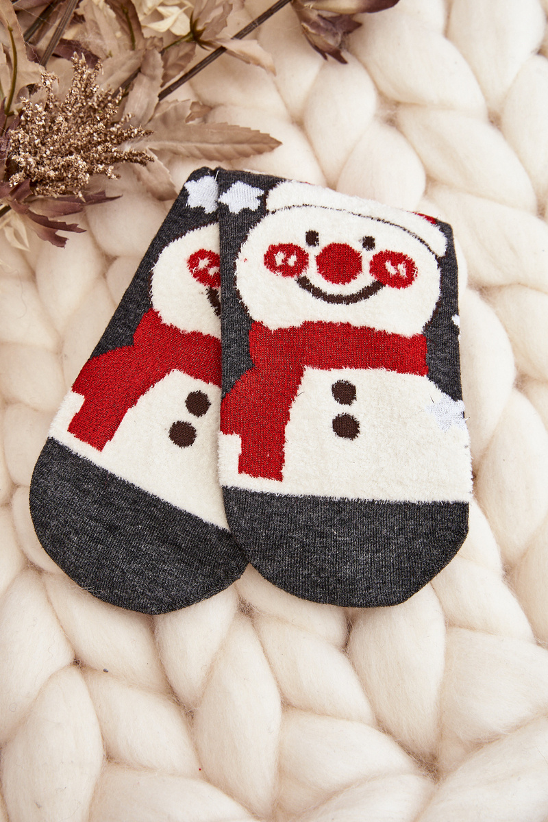 Жіночі новорічні шкарпетки зі сніговиком сірі