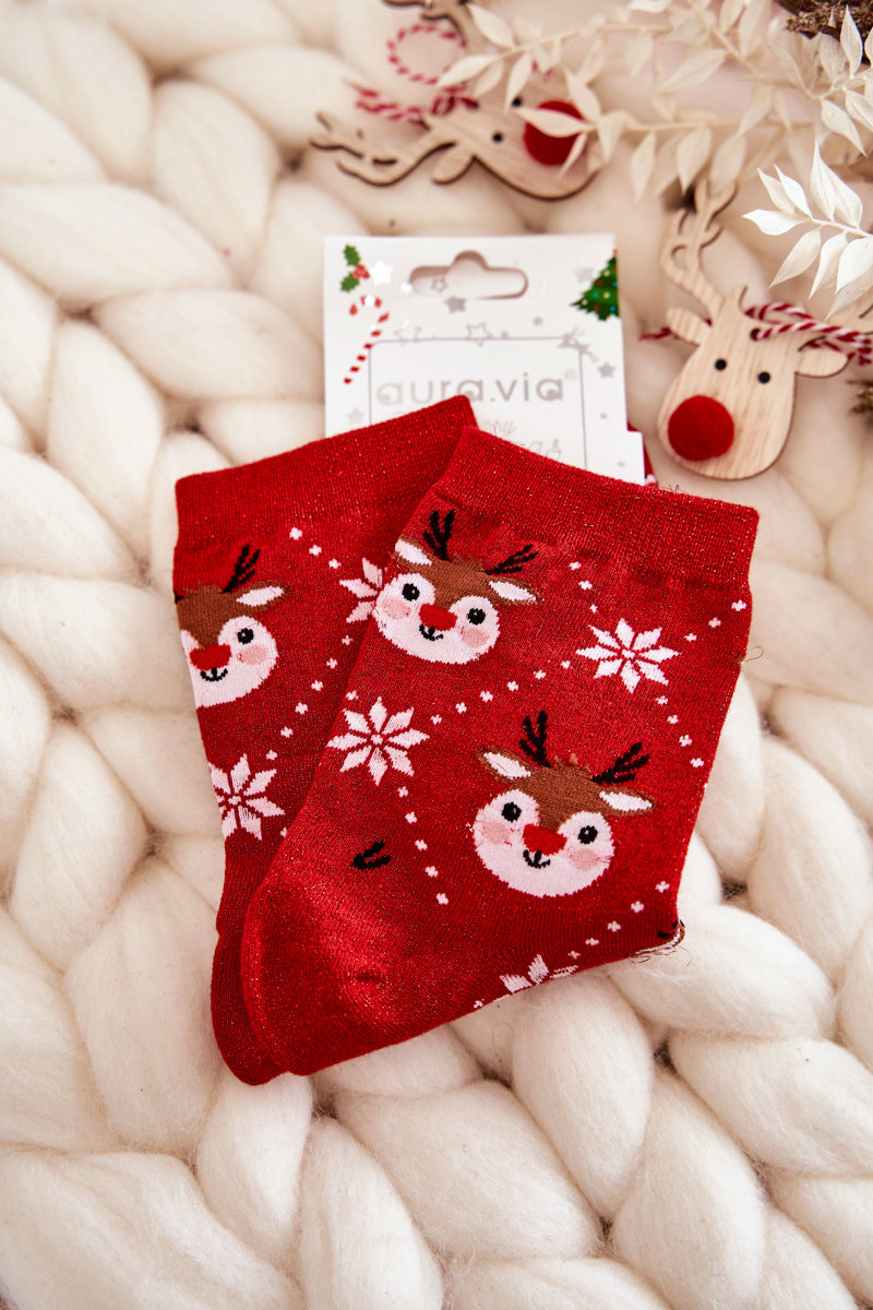 Жіночі новорічні шкарпетки Shiny Reindeer Red
