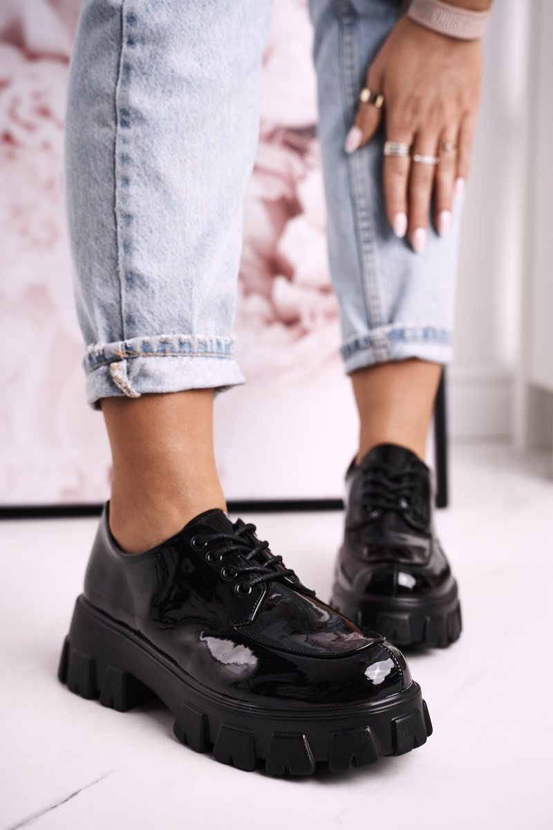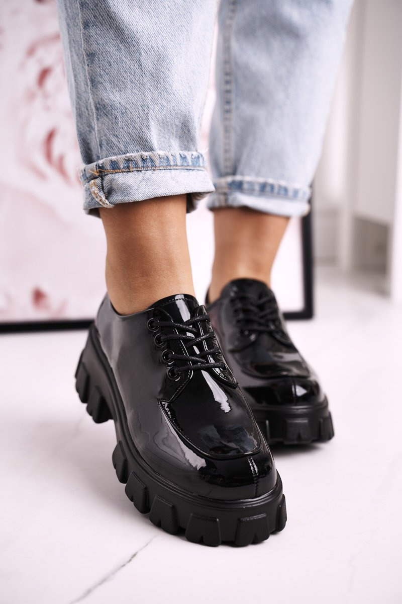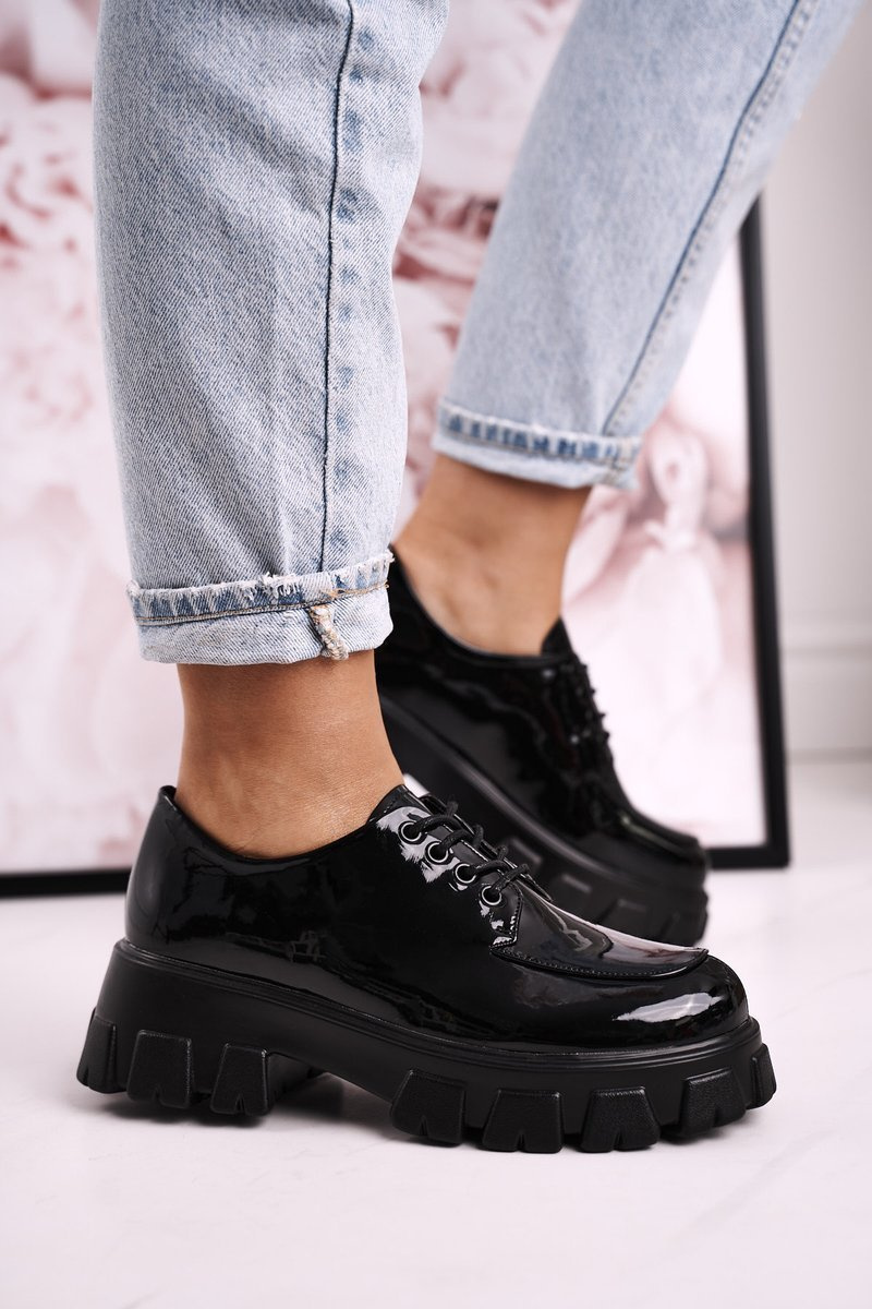 Жіночі оксфорди-броги на масивній платформі S.Barski HX23 лаковані чорні