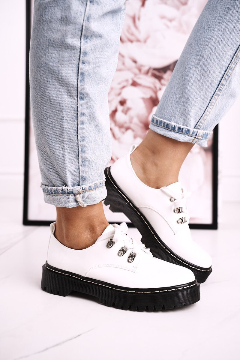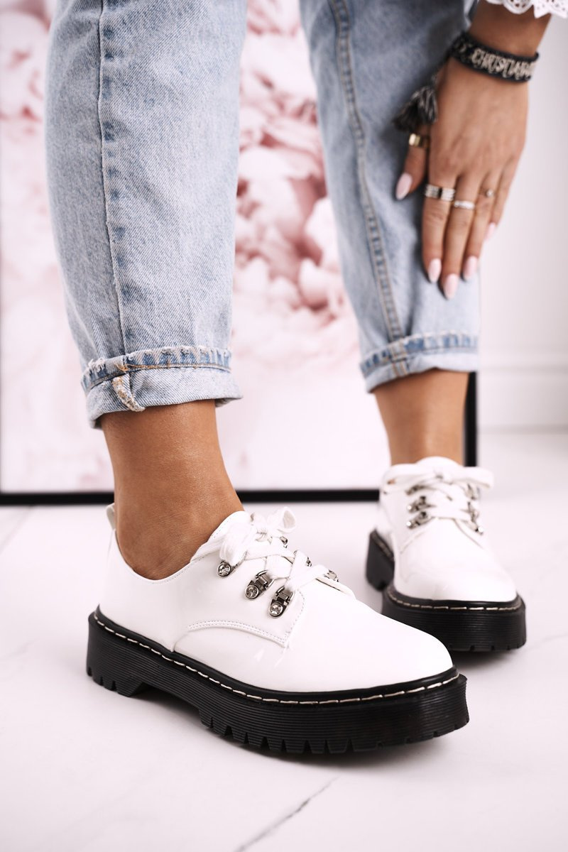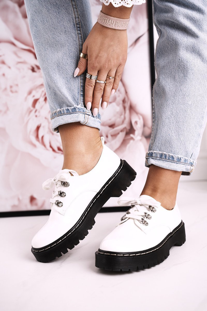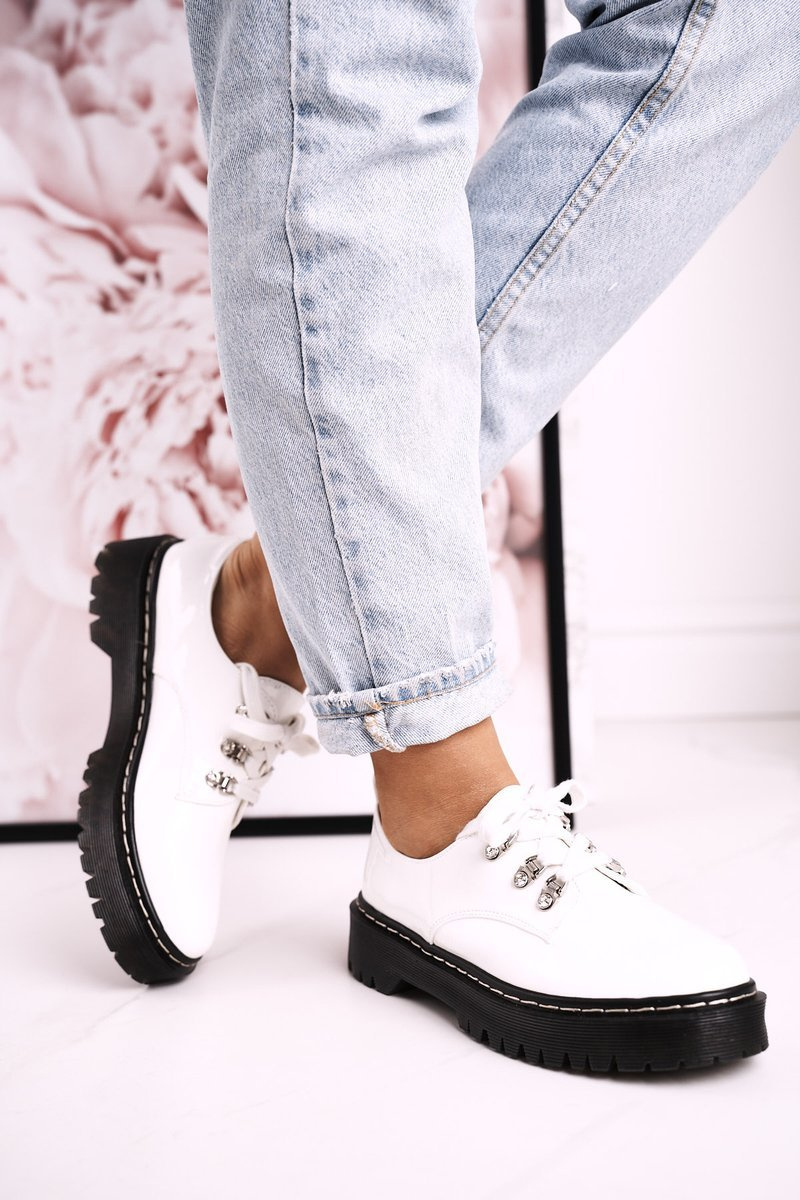 Жіночі оксфорди-броги на платформі S.Barski HX15 лаковані білі
