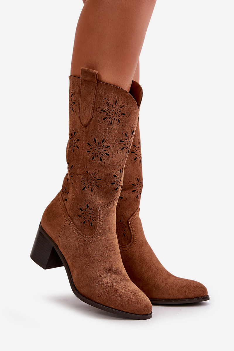 Жіночі перфоровані чоботи з еко замші коричневого кольору Nevilos