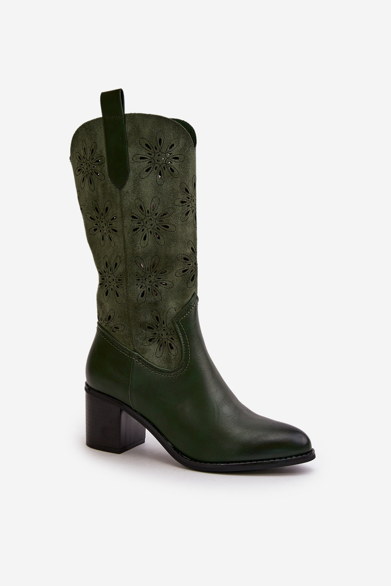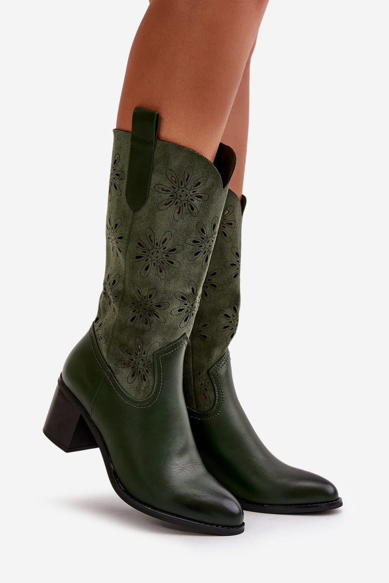 Жіночі перфоровані чоботи з еко замші Nevilos зеленого кольору