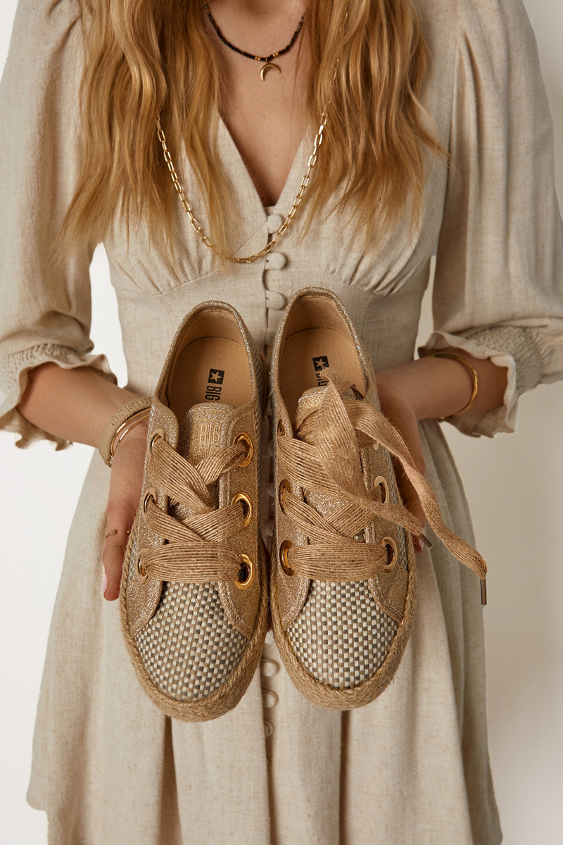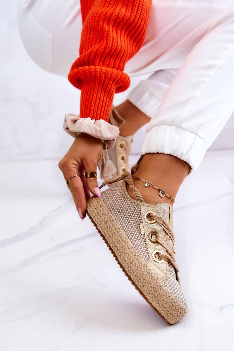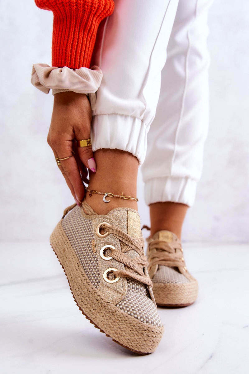 Жіночі плетені кросівки Big Star JJ274392 Бежево-золоті