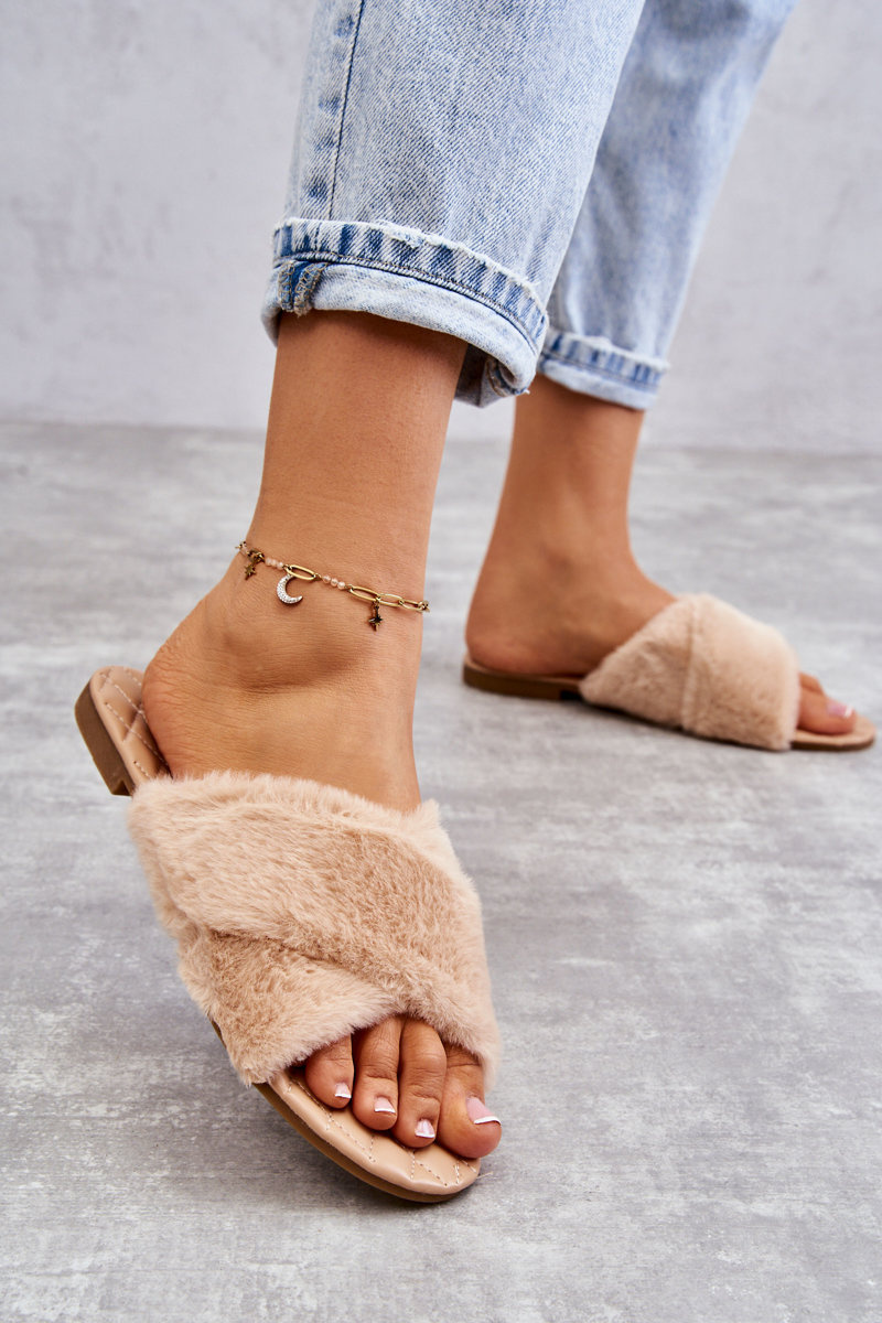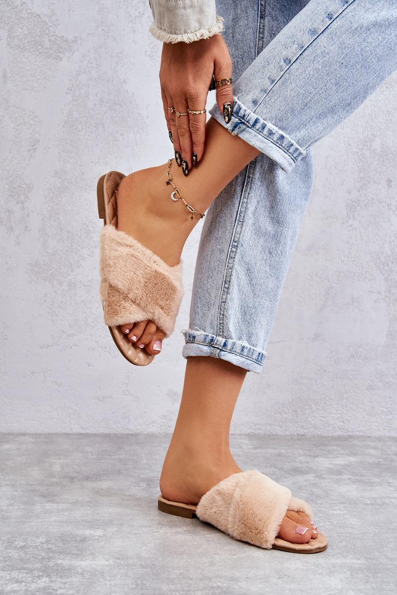Класичні жіночі тапочки на плоскому каблуці та неслизькій підошві. Смуги, що переплітаються спереду, виготовлені з еко хутра. Вставка м'яка і додатково стьобана. Виконана з еко шкіри. Ця модель повинна бути у вашому гардеробі! Обираючи розмір, орієнтуйтеся на таблицю розмірів.
