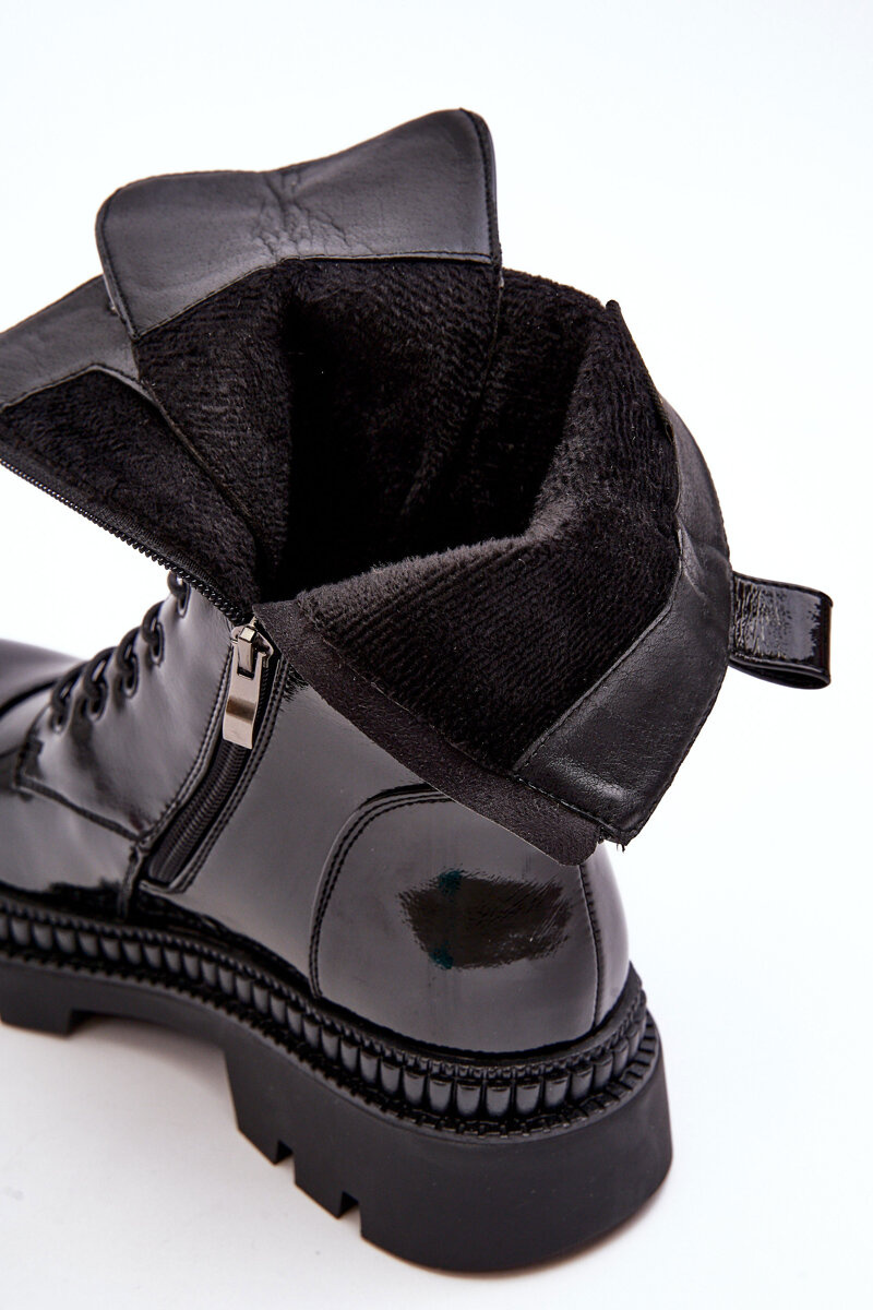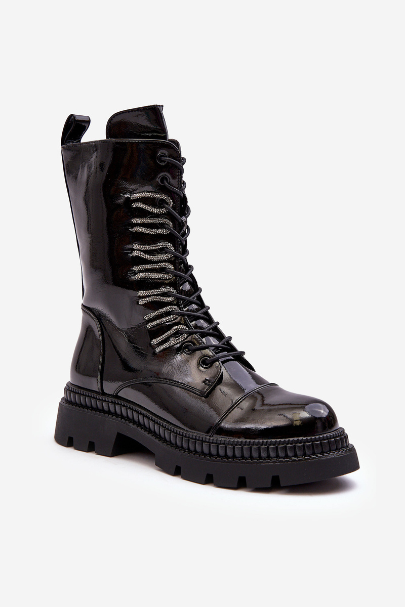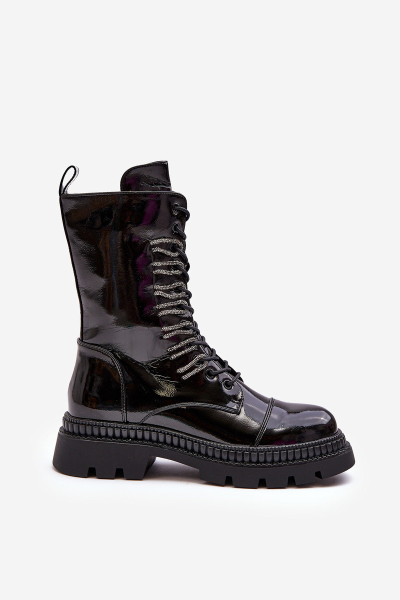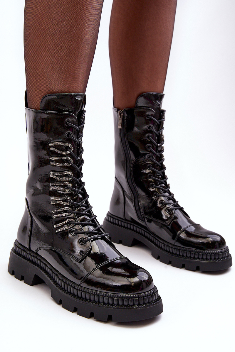 Жіночі поліровані черевики на шнурівці чорні SBarski MR870-72