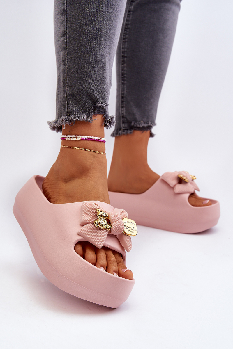 Жіночі поролонові шльопанці з бантом рожеві Salessa