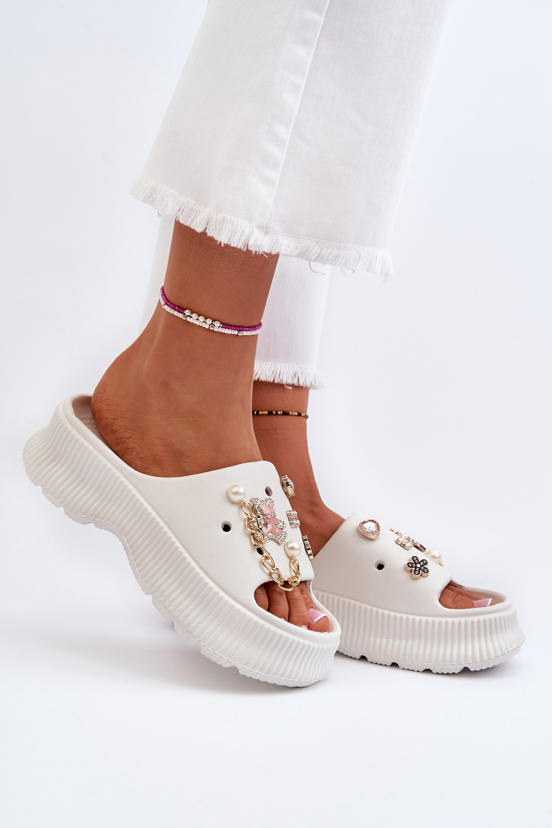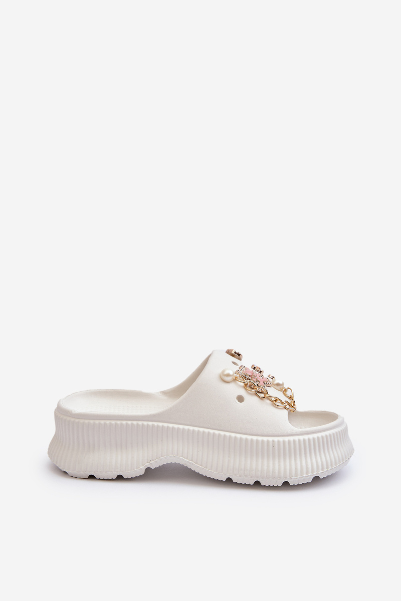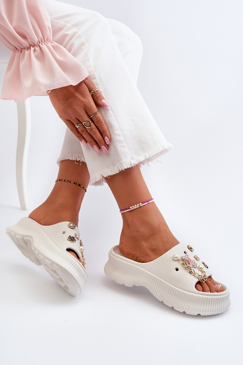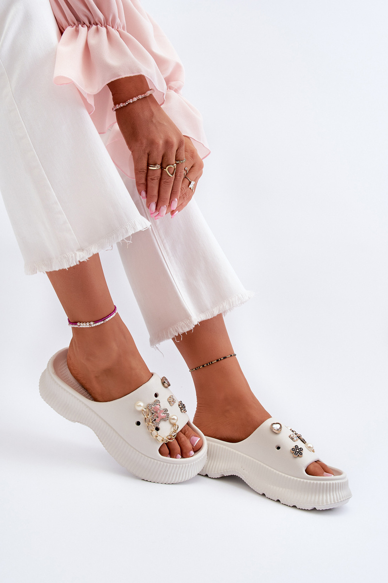 Жіночі поролонові шльопанці з білими прикрасами Afariana