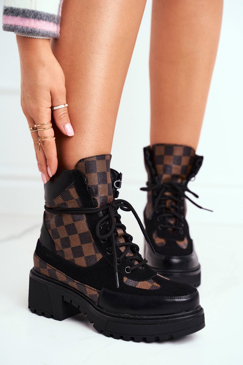 Жіночі похідні черевики на плоскій підошві чорні NS169P Milady