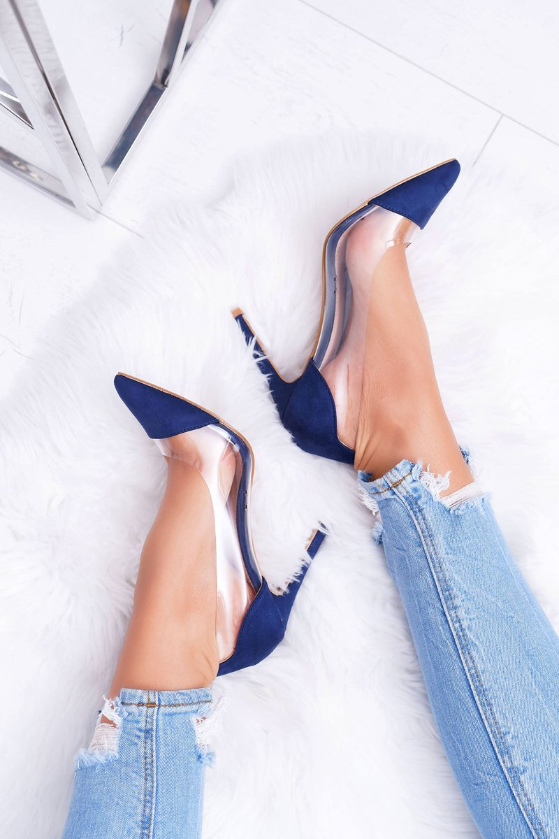 Жіночі прозорі туфлі на шпильці темно-сині Live