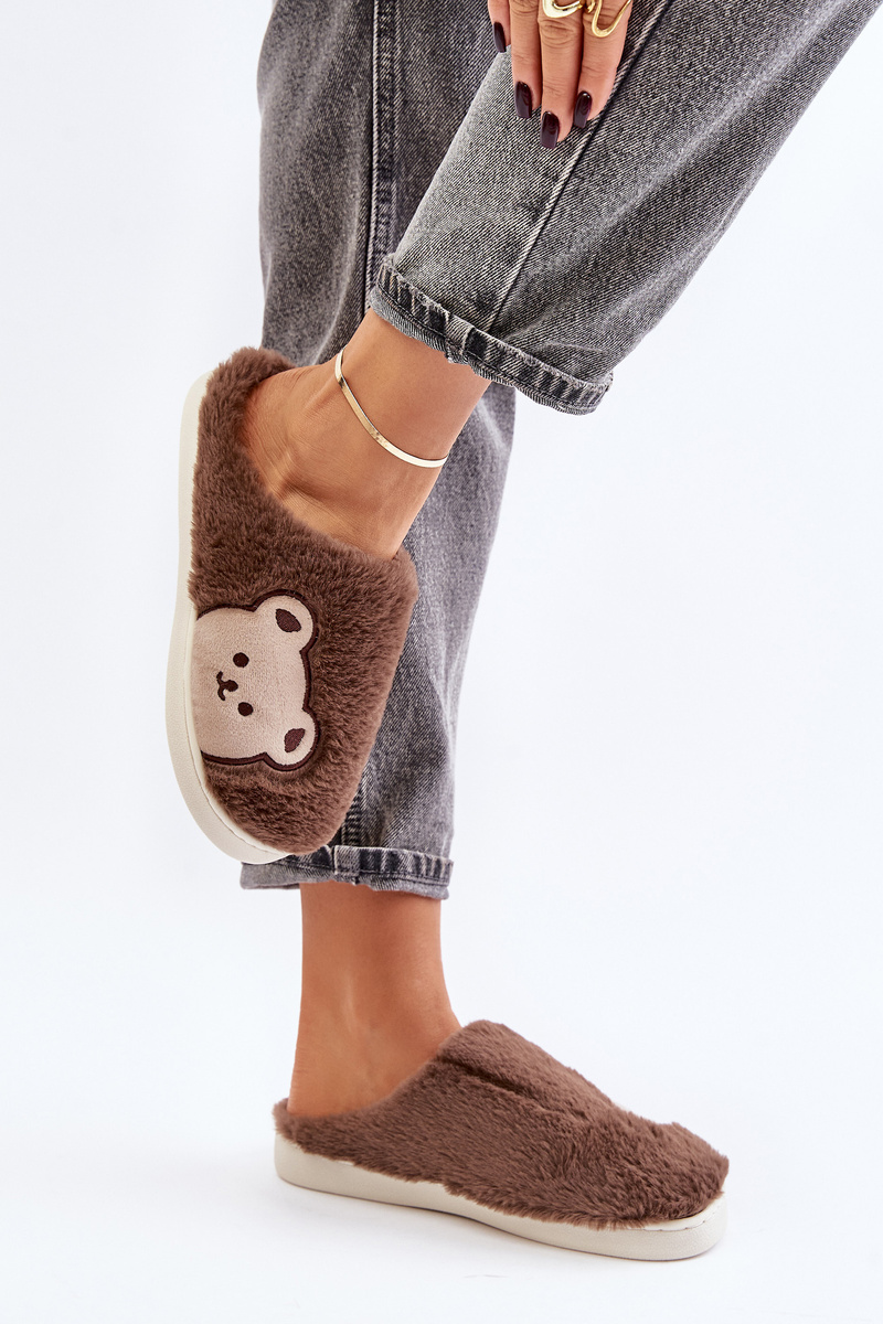 Жіночі пухнасті тапочки з ведмедиком коричневого кольору Fiorinella