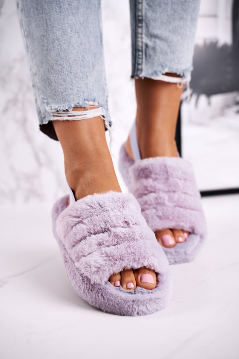 Жіночі пухнасті тапочки на платформі фіолетові Сніжинка