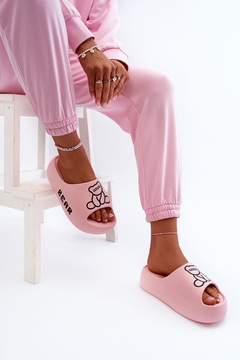 Жіночі пінопластові шорти на масивній підошві з ведмедиком рожевої ламіри