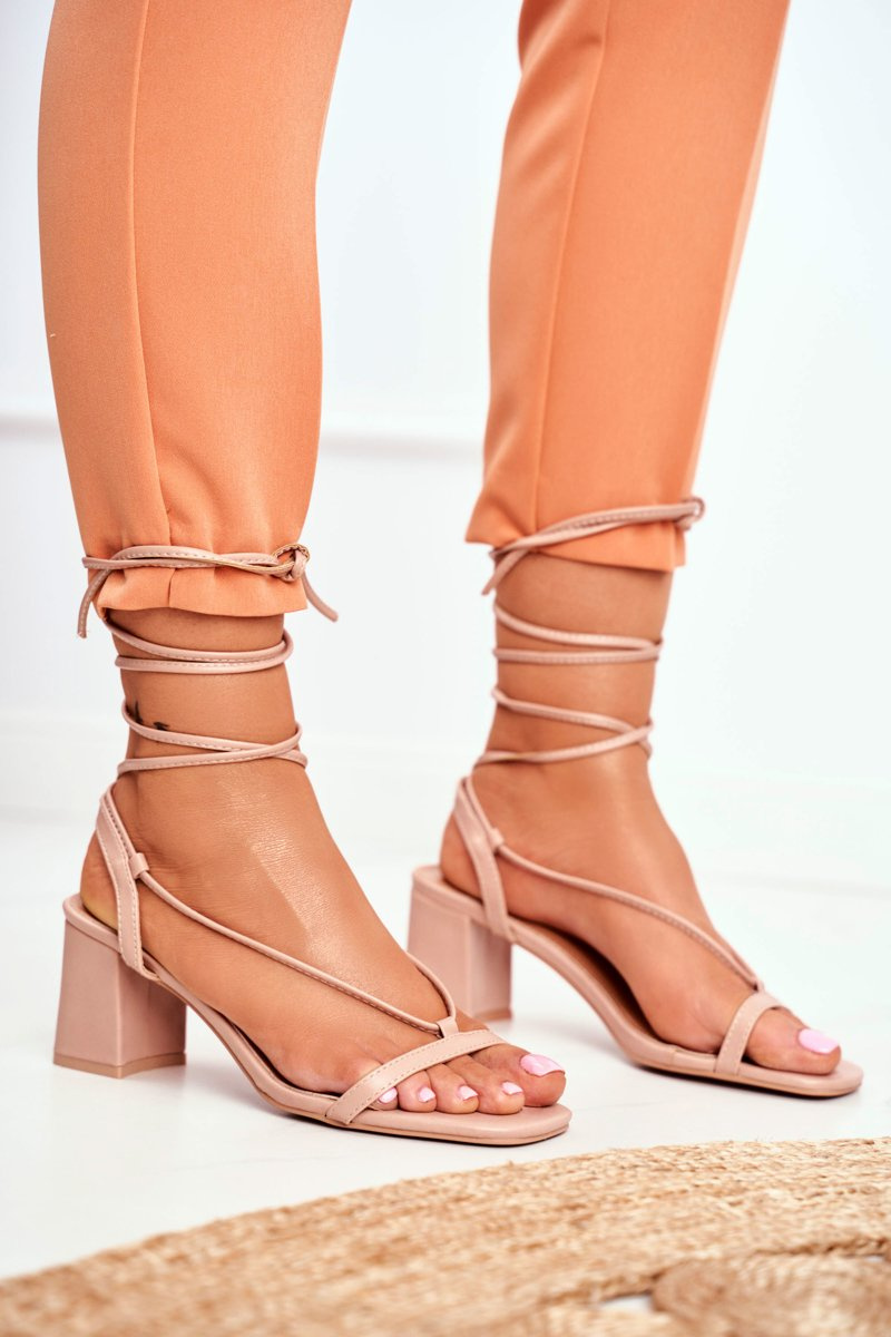 Жіночі ранкові багатоярусні босоніжки на шпильці, бежевого кольору