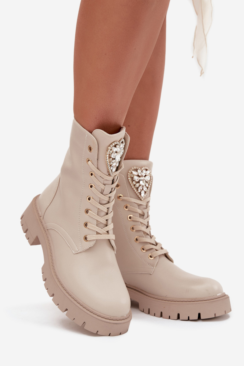 Жіночі робочі ботинки з кришталиками на язичку світло бежеві Rosira