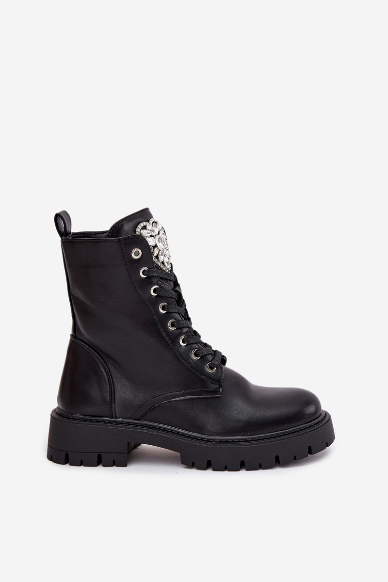Жіночі ботильйони з екошкіри — це чарівна пропозиція, яка поєднує комфорт з модним деталлю. Модель на шнурках і блискавці забезпечує легке надягання та ідеальне прилягання до стопи, а декоративне серце з кристалами на язичку додає делікатного жіночого блиску, чудово доповнюючи щоденні образи. Будь ласка, зверніться до розмірної сітки при виборі розміру.