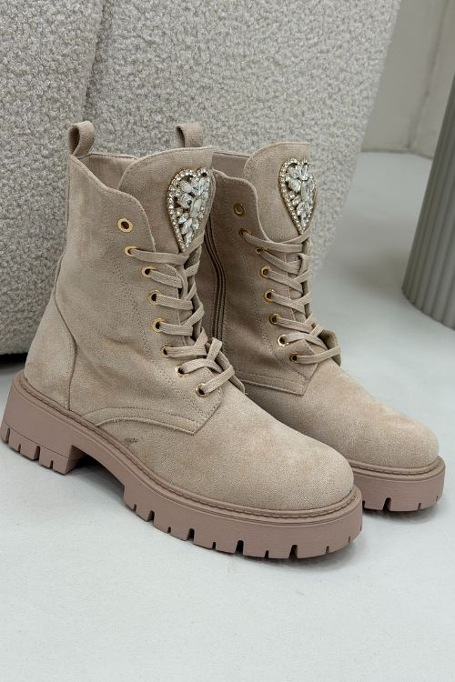 Жіночі робочі черевики з кристалами на язичку бежеві Rosira