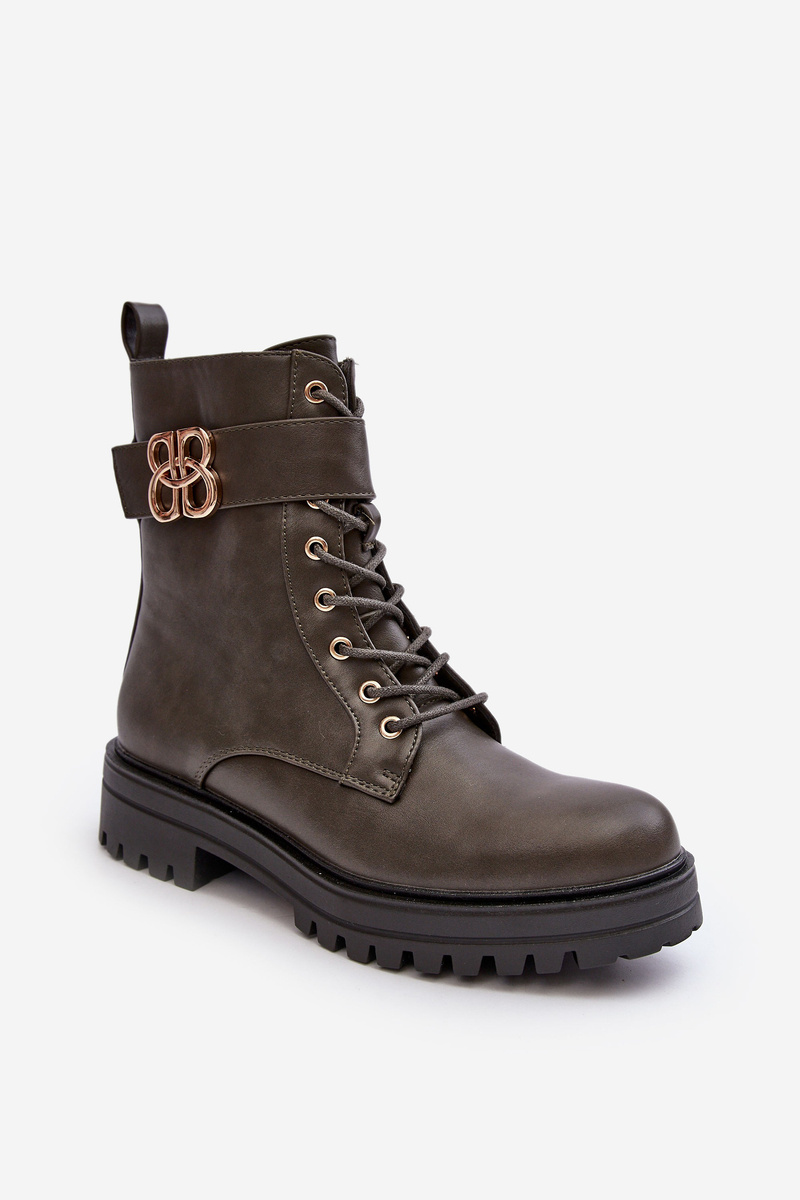 Черевики жіночі на плоскому, стійкому каблуці. Зашнуровується спереду і додатково застібається на блискавку. Пальці ніг округлі. Зсередини підбитий підкладкою. Зверху пояс із золотистим декором. Крім того, каблук посилений. При виборі розміру орієнтуйтеся на таблицю розмірів.