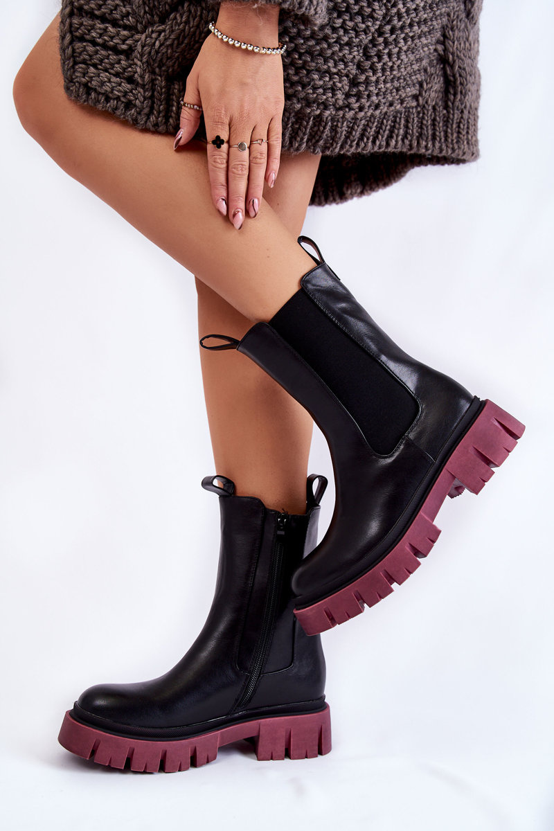 Жіночі робочі черевики на платформі чорно-бордові Aliana