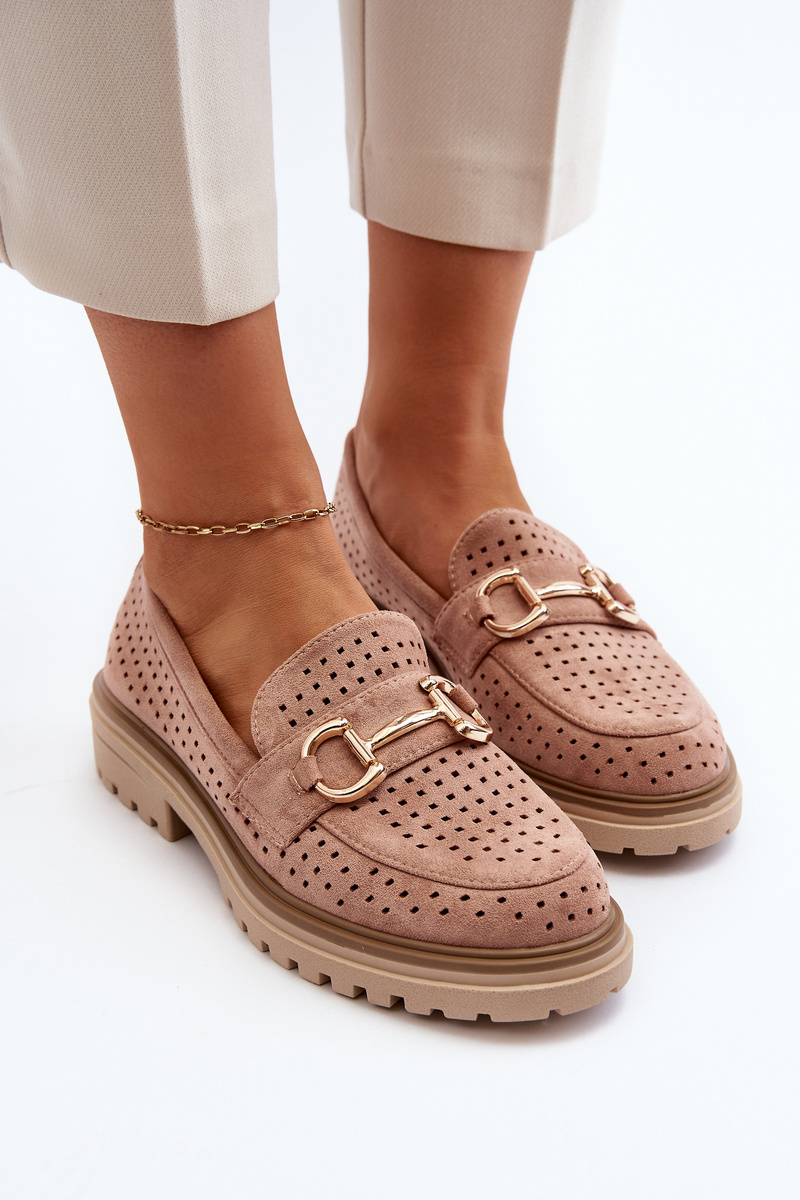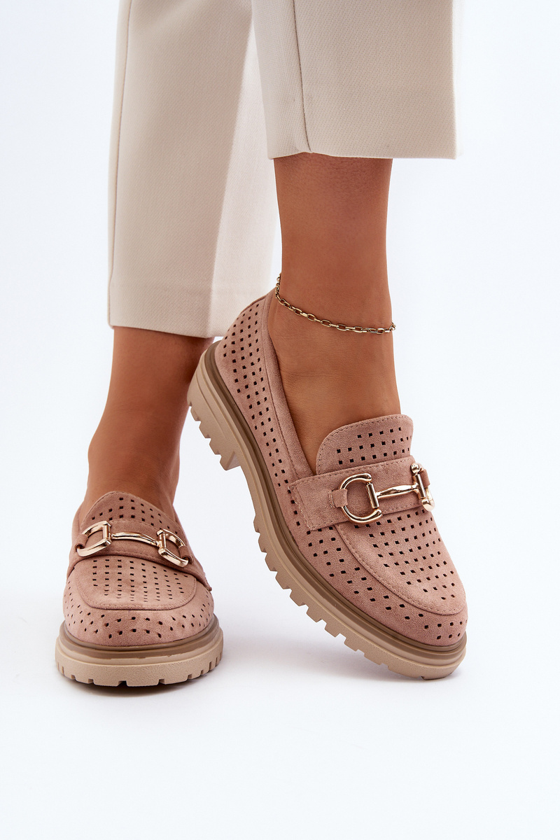 Жіночі рожеві лофери з перфорацією та прикрасою Talesse