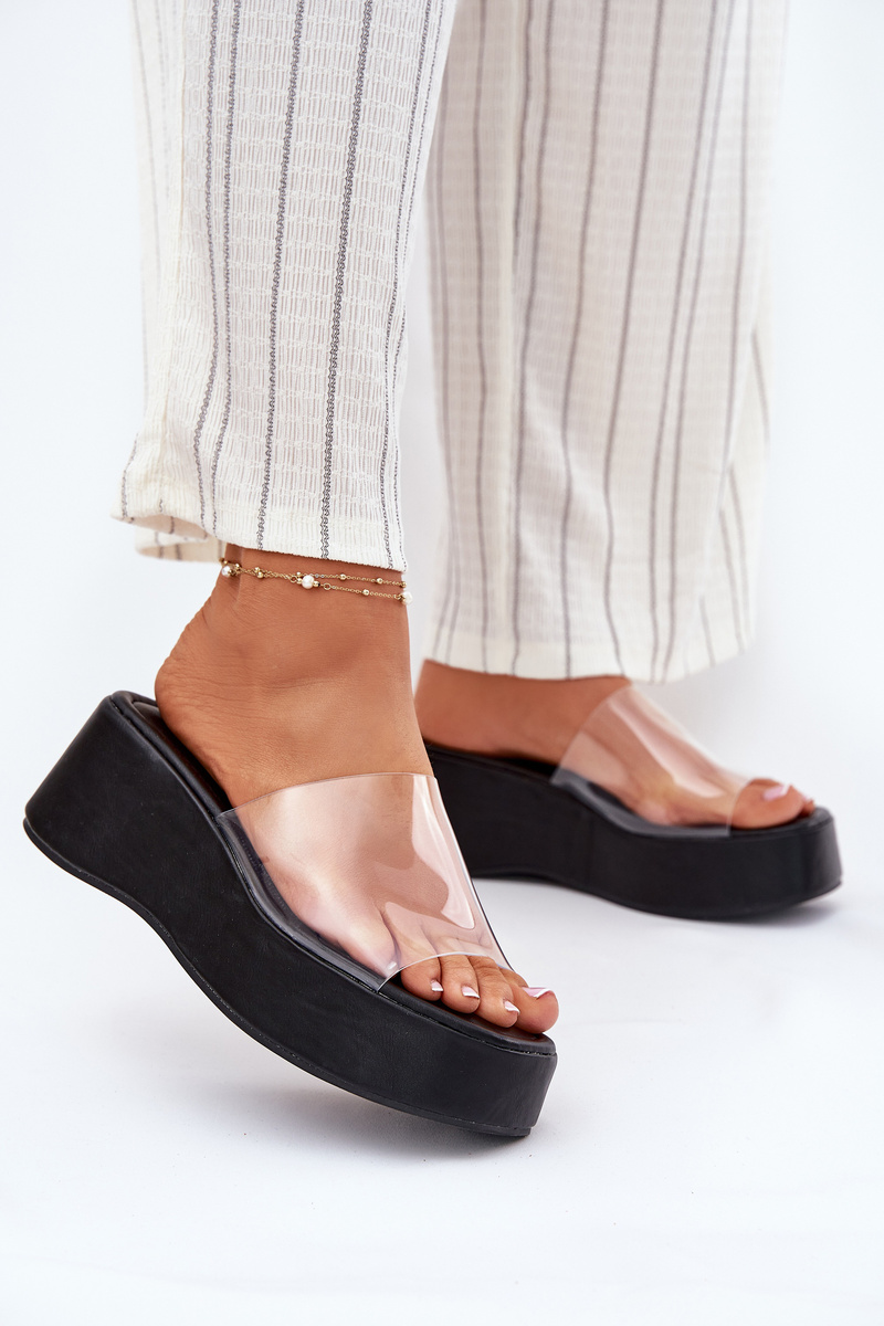 Жіночі сандалі з прозорим ремінцем на платформі чорні Meltiana
