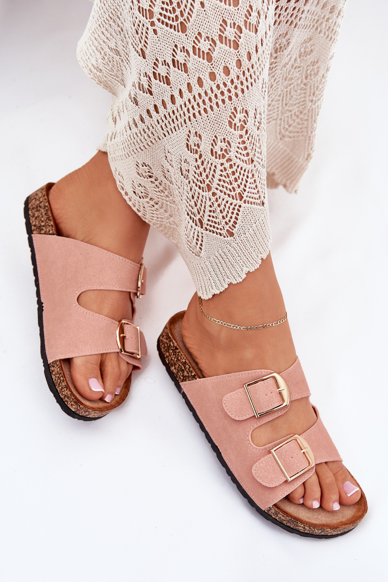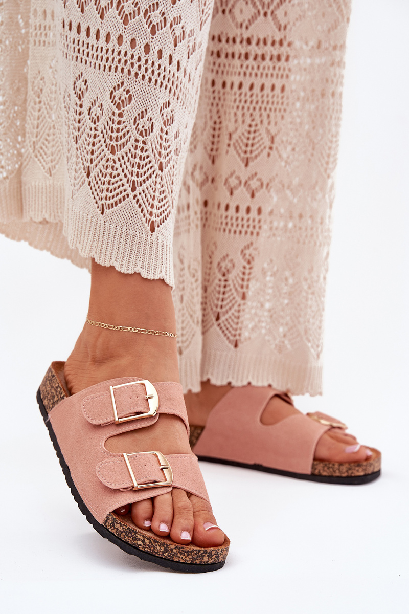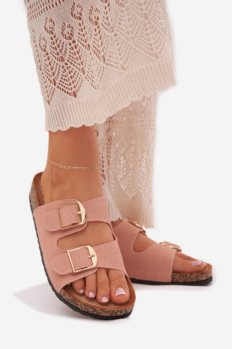 Жіночі сандалі на корковій платформі з золотими пряжками рожеві Lisavionea