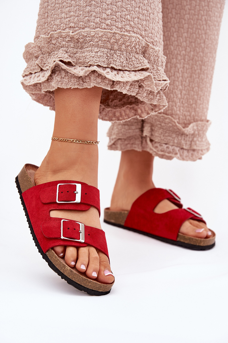 Жіночі сандалі на корковій платформі з пряжками червоні Evisolla