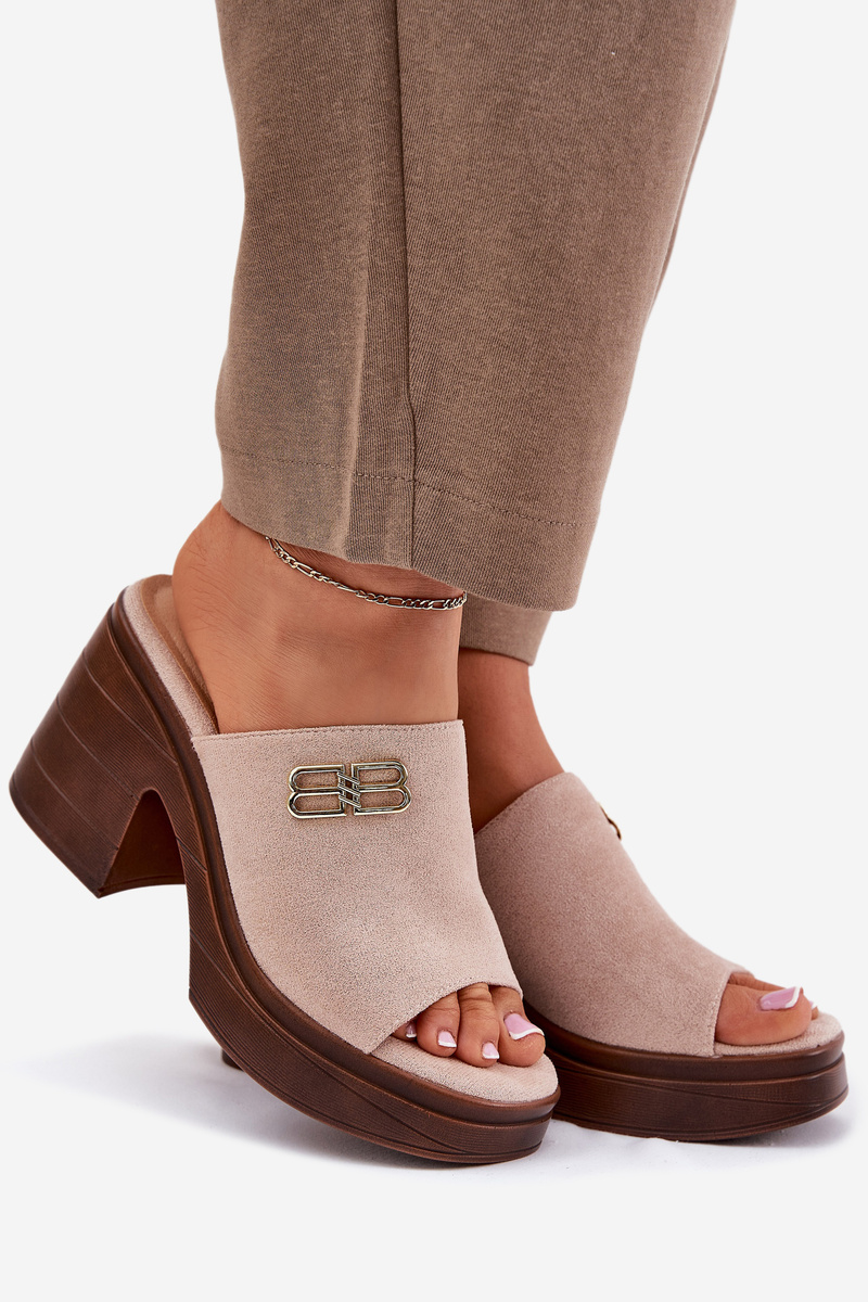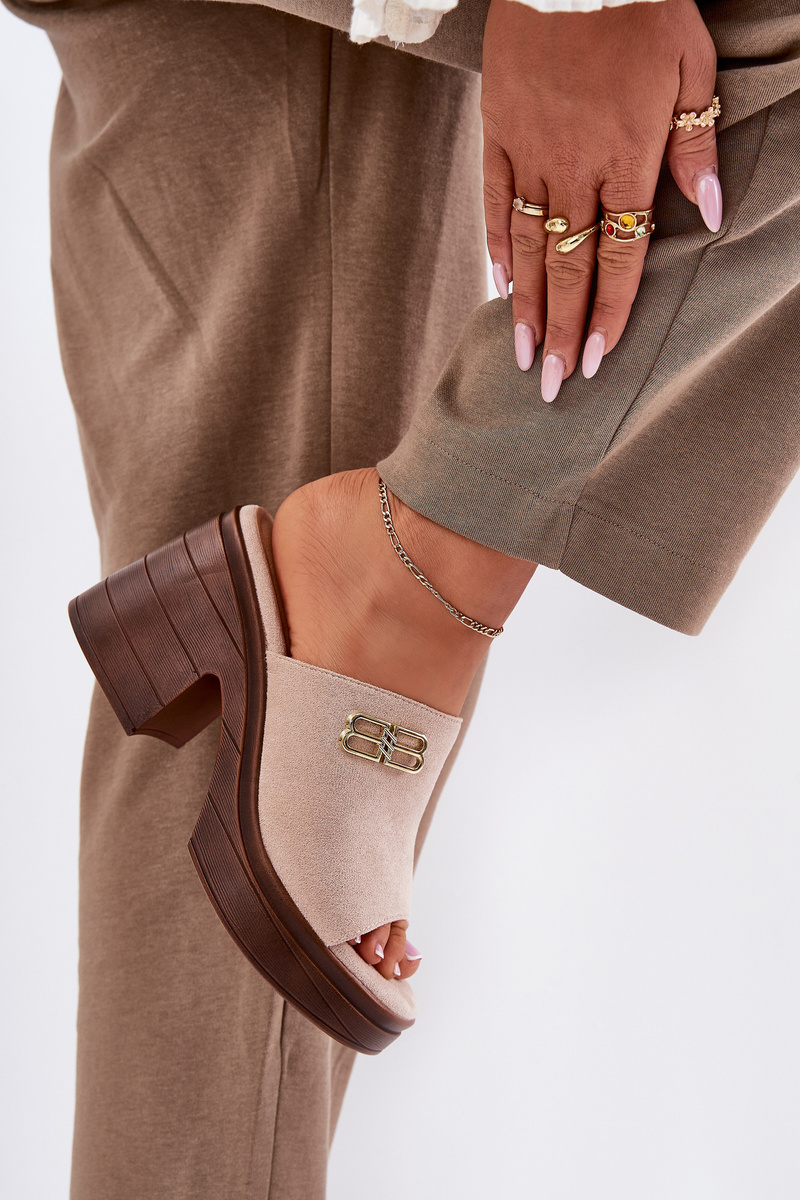 Елегантні жіночі шльопанці, виготовлені з еко-замші, є ідеальним вибором для особливих випадків. Золотий деталь спереду додає їм ніжного блиску, надаючи їм елегантного характеру. Розташовані на масивному каблуці та платформі, вони забезпечують стабільність і комфорт протягом усього дня. Ці шльопанці поєднують сучасний вигляд із функціональністю, ідеально поєднуючись з елегантними стилізаціями для різних святкувань та вечірніх виходів. Будь ласка, зверніться до розмірної сітки при виборі розміру.