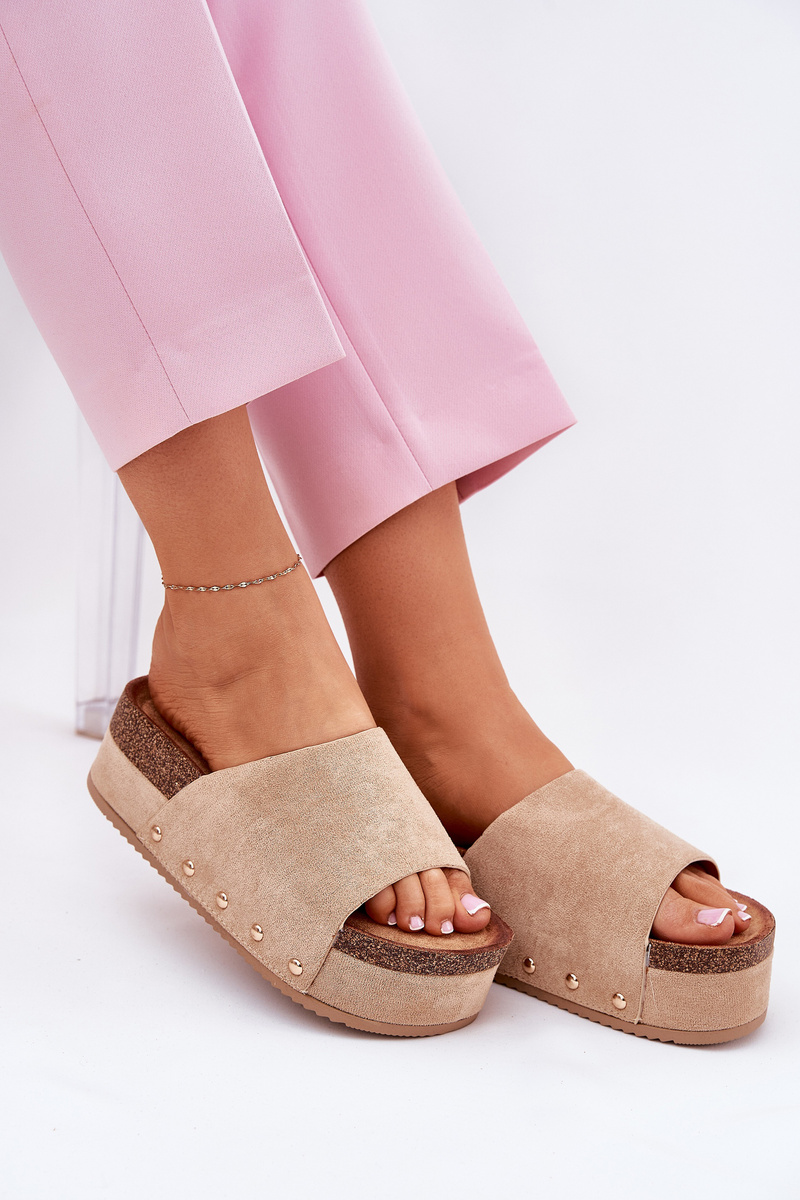Стильні жіночі сандалі, виготовлені з еко замші. Розташовані на масивній платформі, яка стрункішає силует. Декор у вигляді цвяхів надає їм унікального характеру і привертає увагу. Профільована устілка забезпечує комфорт протягом усього дня, дбаючи про належну підтримку стопи. Ці сандалі стануть відмінним вибором для літніх днів! Будь ласка, зверніться до розмірної сітки при виборі розміру.