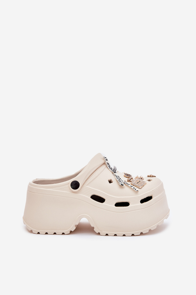 Жіночі сандалі на масивній платформі з прикрасами бежеві Vivira