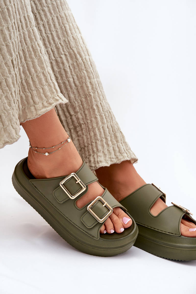Стильні жіночі сандалі на платформі з пінистого матеріалу. Верх виготовлений з еластичного, гумового матеріалу, який чудово підходить для ноги, а дві декоративні пряжки спереду додають всьому модного вигляду. Ідеально підходять для літніх днів - як для прогулянок містом, так і для пляжу! Будь ласка, зверніться до розмірної сітки при виборі розміру.