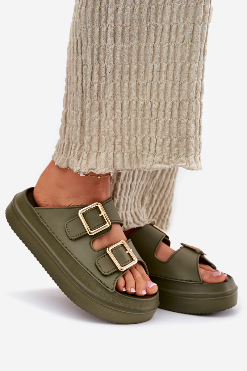 Жіночі сандалі на платформі з золотими пряжками зелені Zorila