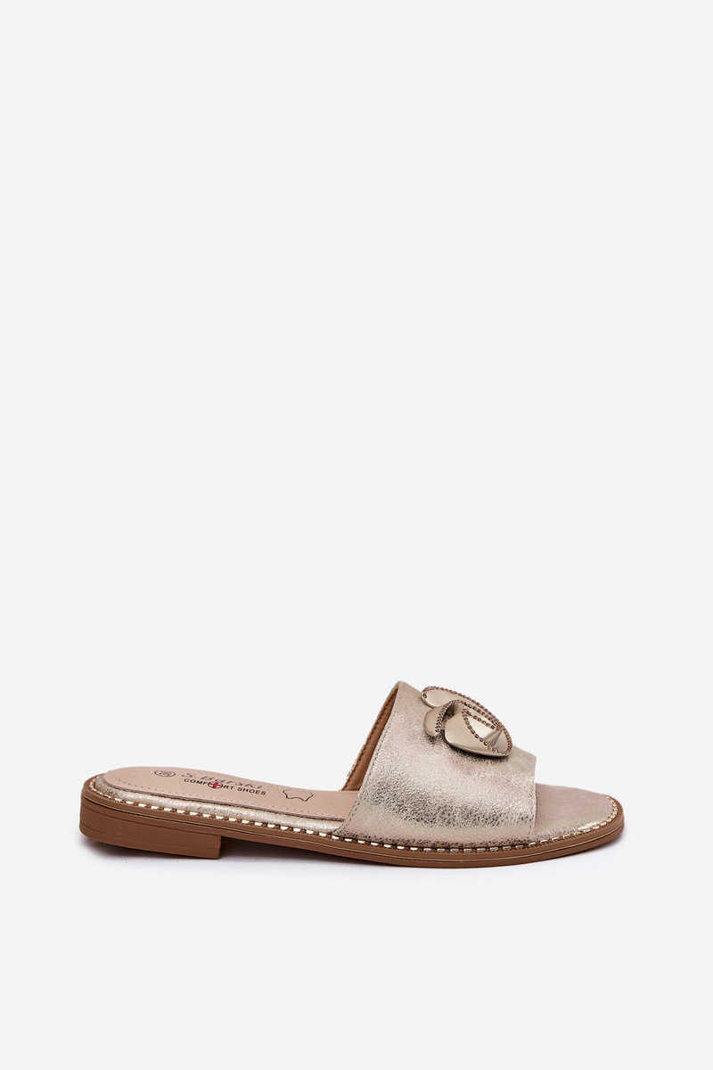 Жіночі сандалі на плоскому каблуці з декоративною деталею KV51-007 золоті