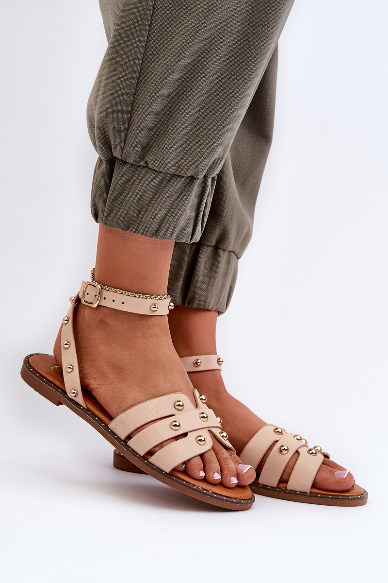 Жіночі сандалі на плоскій підошві з прикрасами бежевого кольору Ianaera