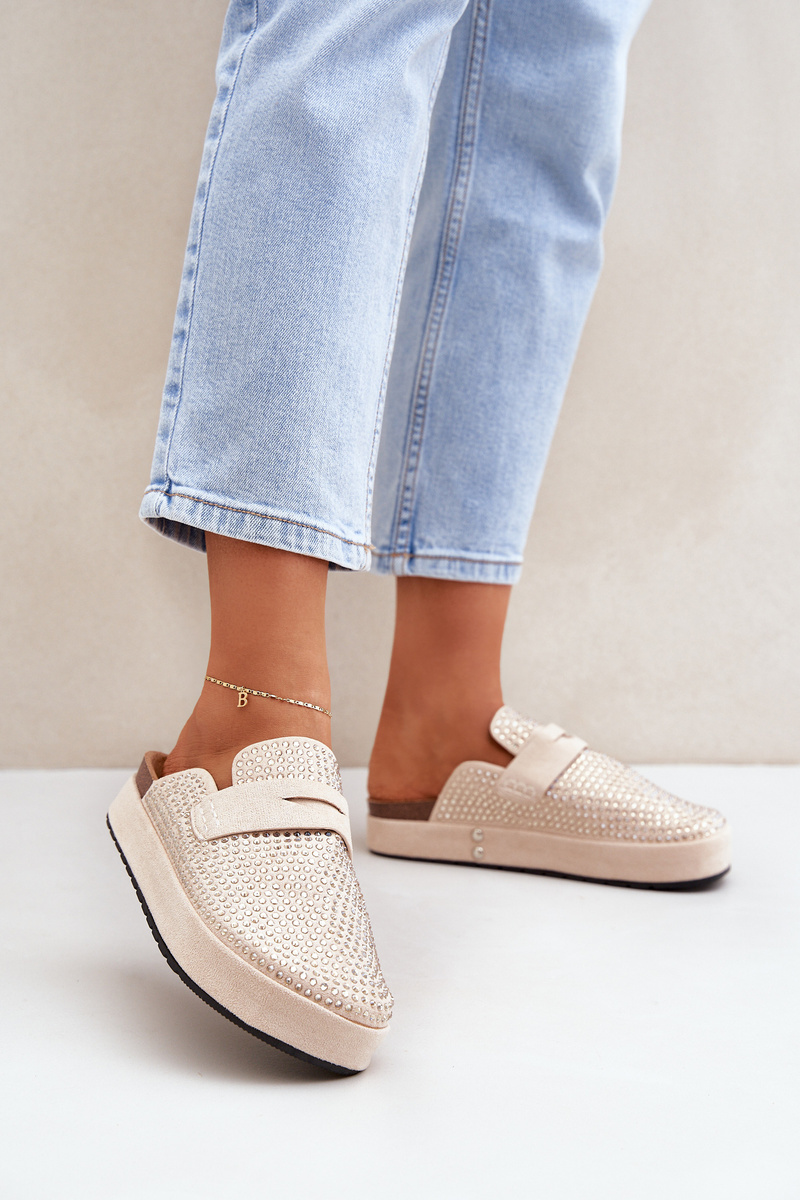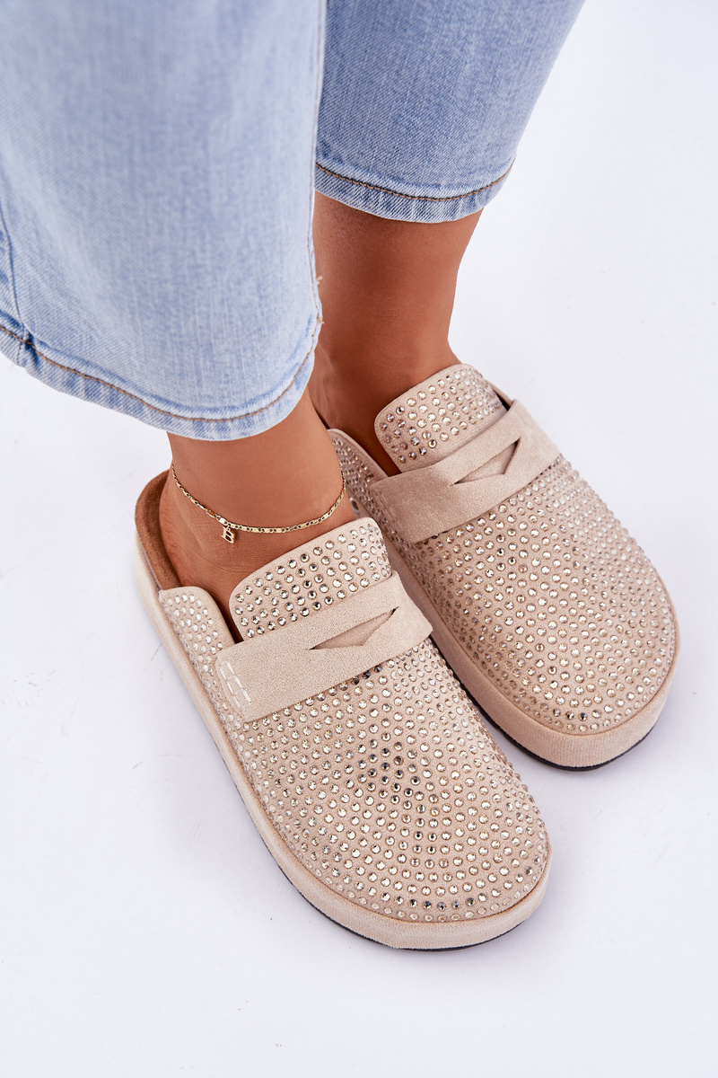 Жіночі тапочки з еко-велюру. Встановлені на платформі. Ця модель виділяється численними цирконіями, які додають блиску кожному стилю. Закриті, округлі носки. Легка профільована устілка забезпечує комфорт. Стильний фасон, який безсумнівно доповнить багато літніх стилів! Будь ласка, зверніться до розмірної сітки при виборі розміру.
