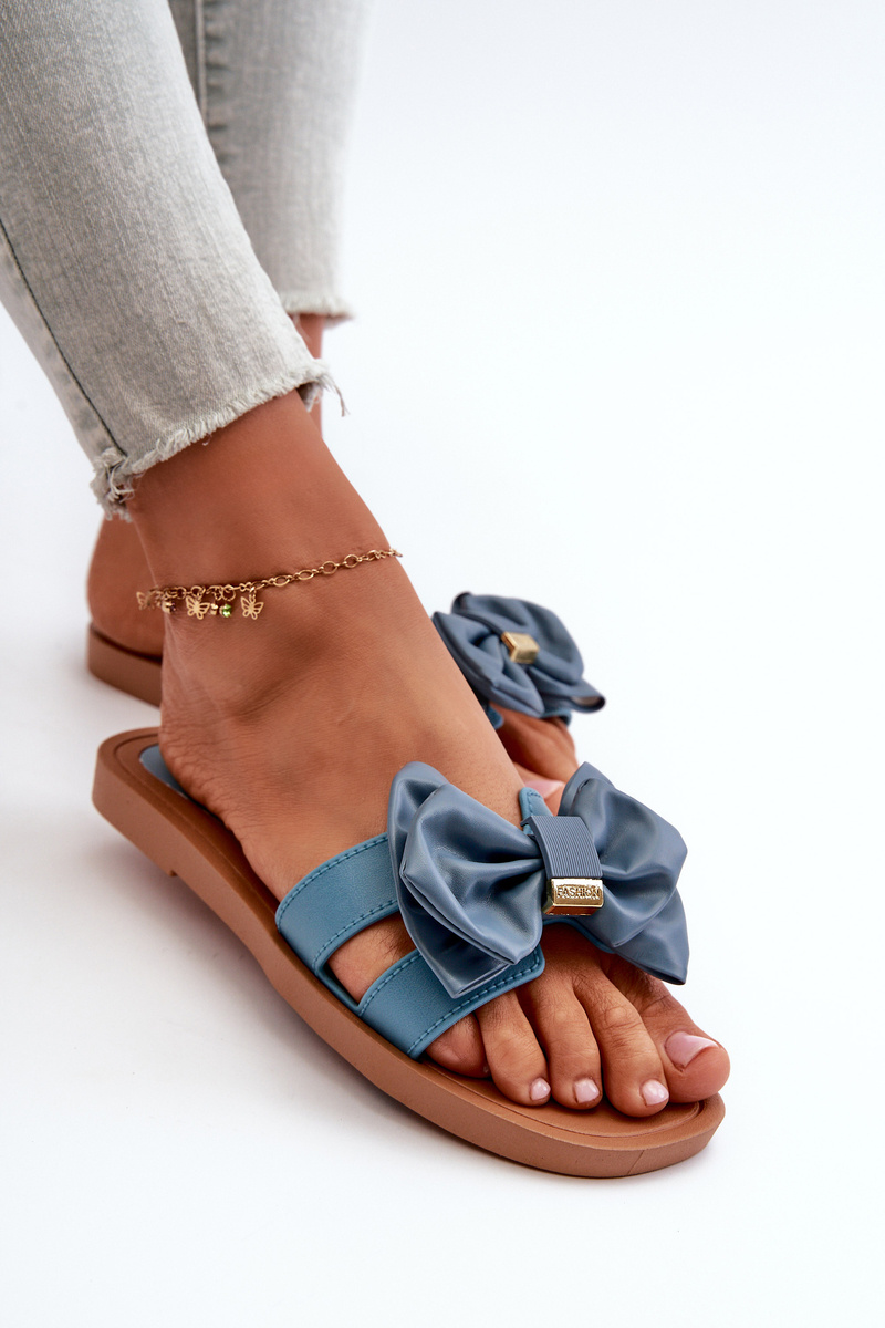 Тапочки жіночі з гумового матеріалу. Бант з екошкіри надає їм дівочий і чарівний вигляд. Тапочки зручні в носінні та гнучкі. Ідеально підходить для літніх прогулянок, пляжних поїздок або зустрічей з друзями. Обираючи розмір, орієнтуйтеся на таблицю розмірів.