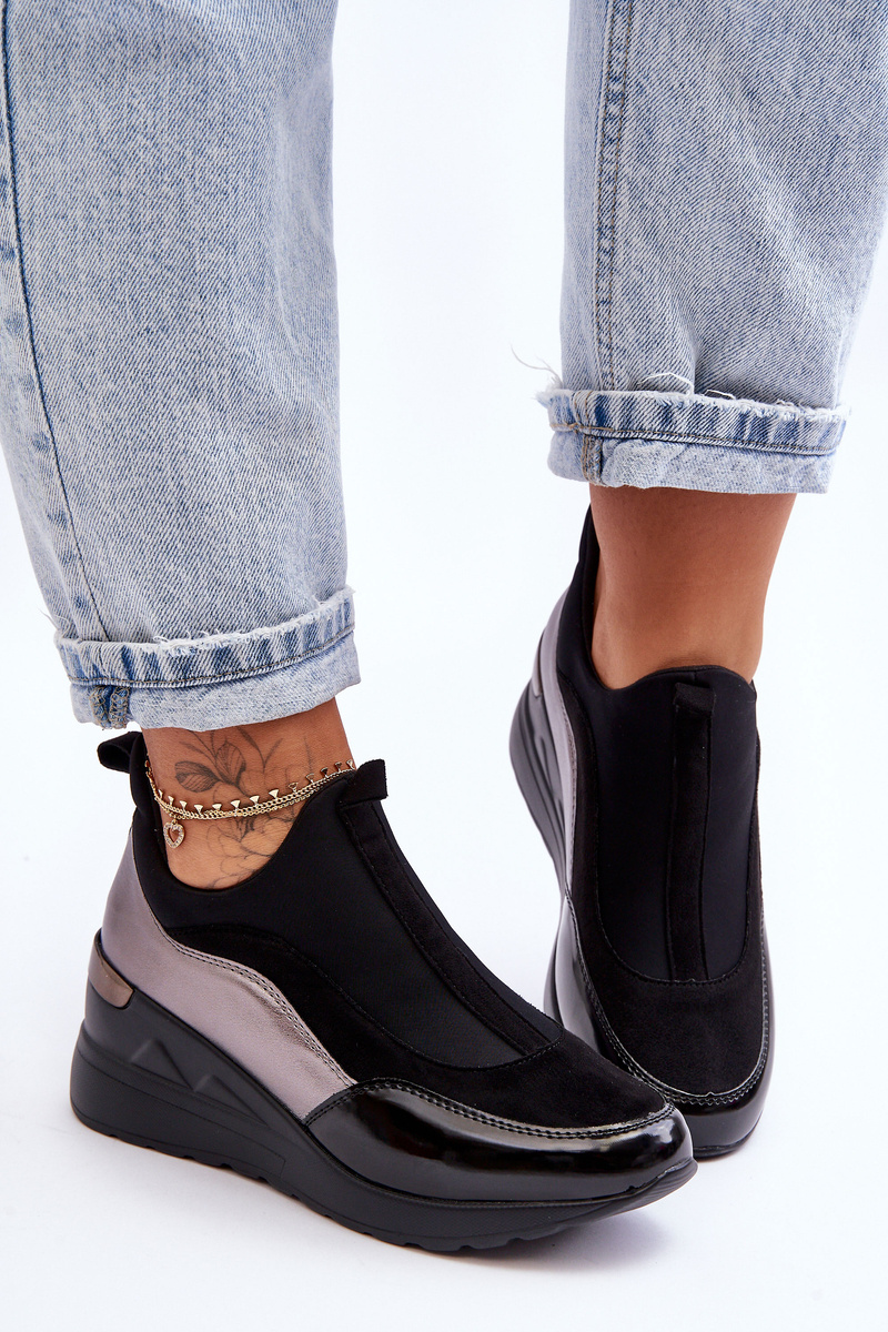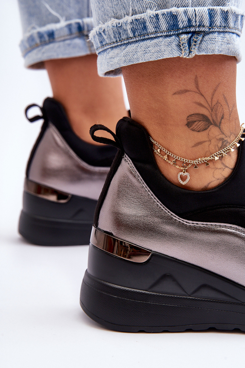 Жіночі сліпони на танкетці чорно-сріблясті Farro