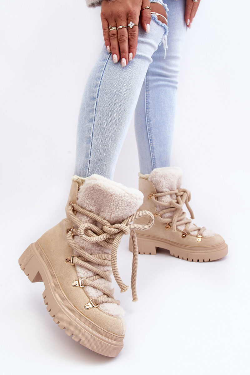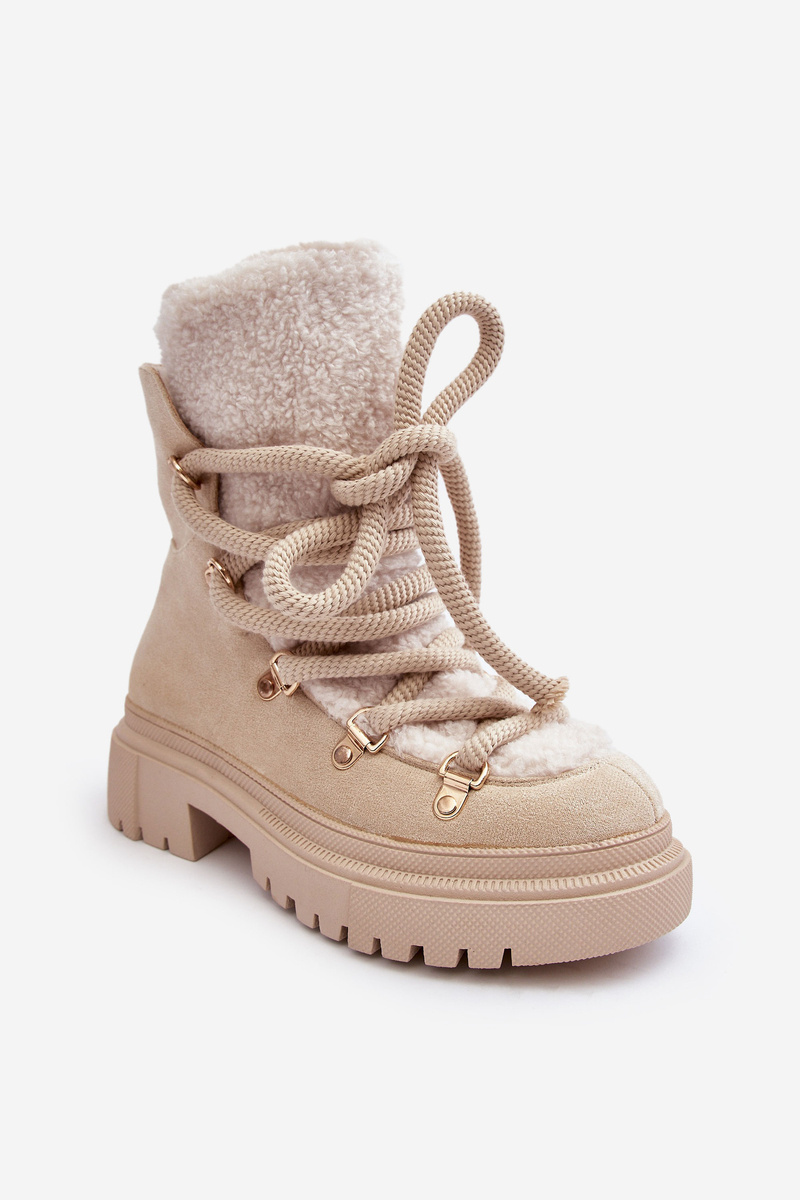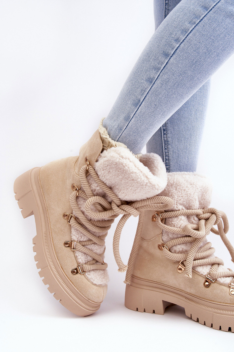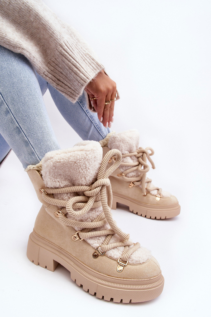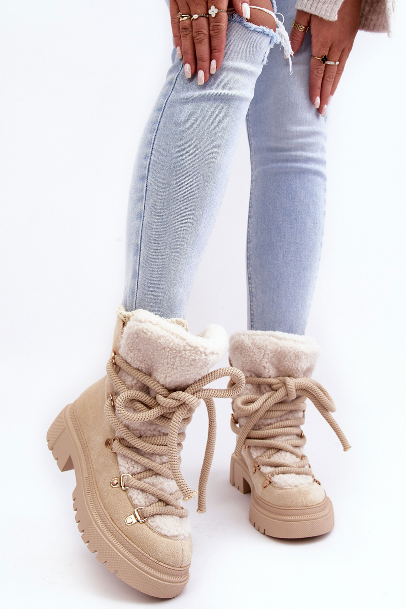 Жіночі снігові черевики на шнурівці світло-бежеві шалі
