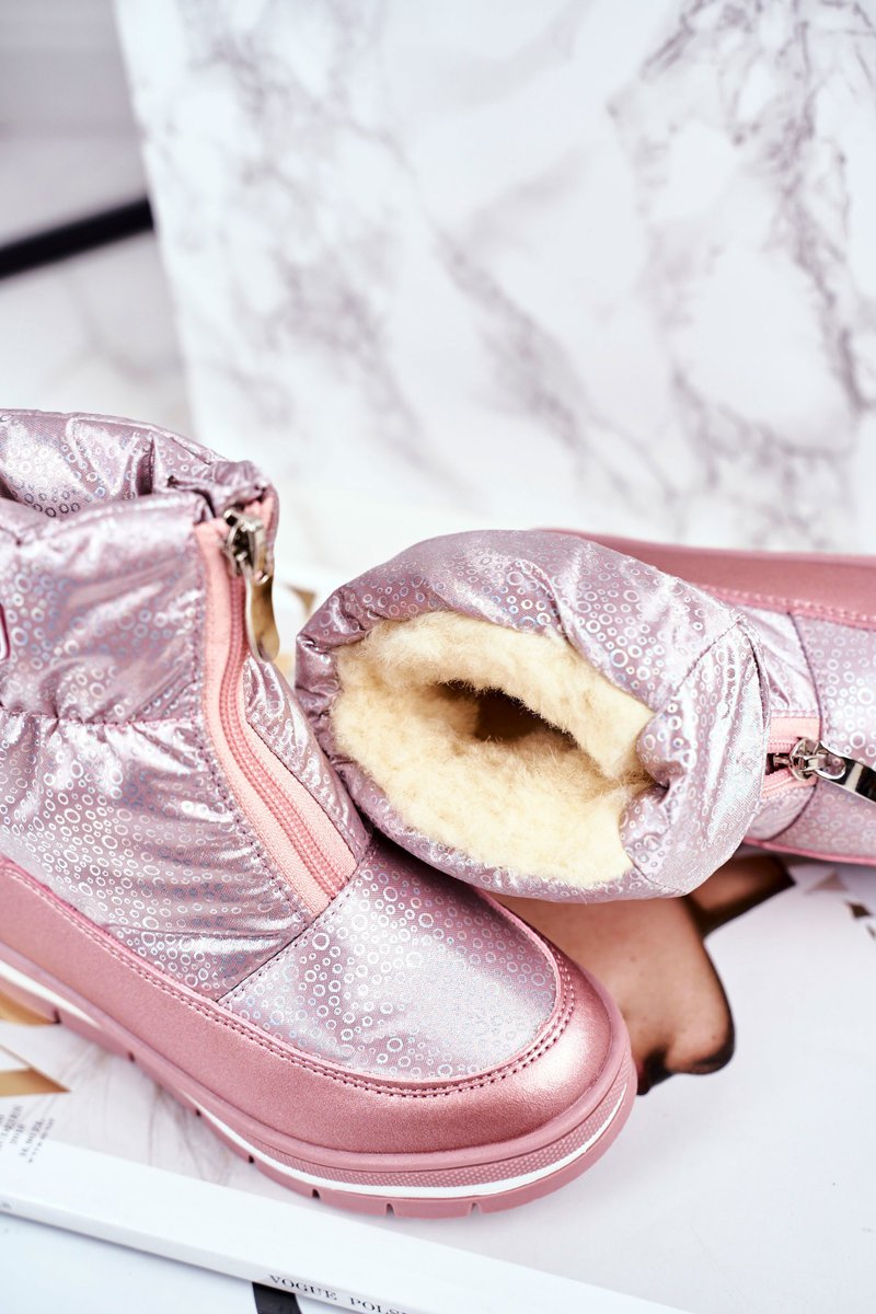 Жіночі снігові черевики теплі з натуральної вовни рожеві бульбашки