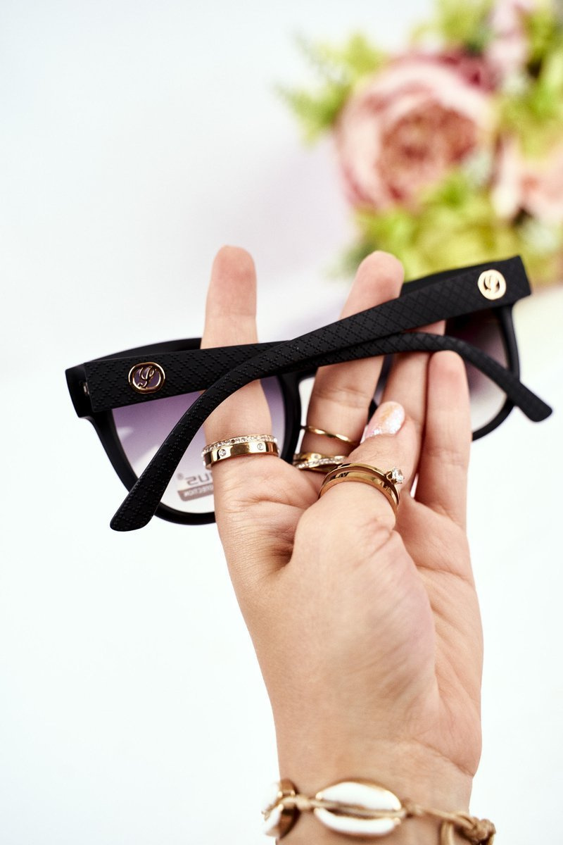 Окуляри мають лінзи з красивим градієнтом чорного кольору та модні прикраси на дужках, які видно на малюнках.Фотографії належать нам і представляють продукт, який продається.