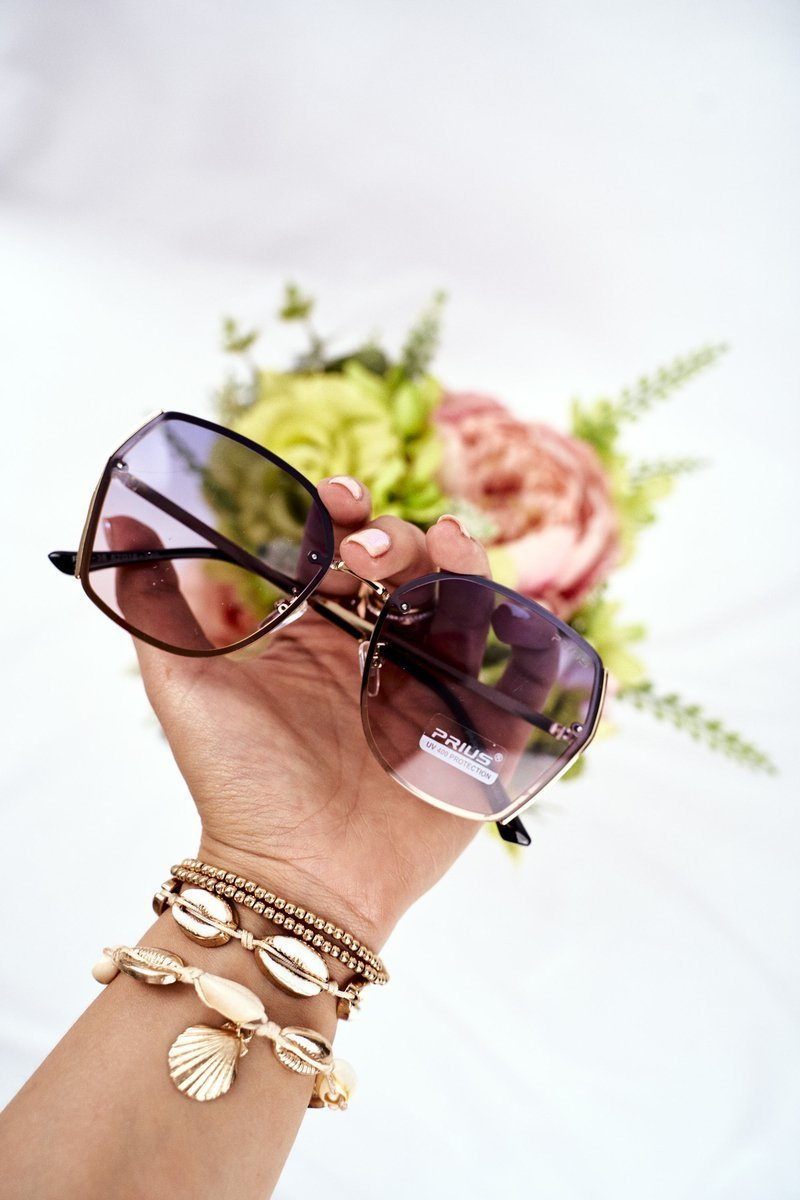 Жіночі сонцезахисні окуляри Prius PRE-38 Gold Black Gradient Glitter