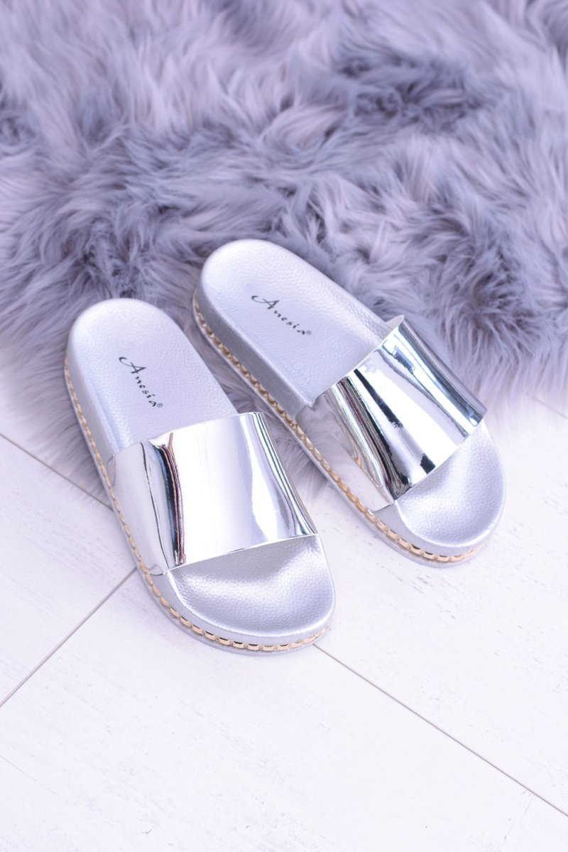 Жіночі сріблясті шльопанці зі стразами Mirock
