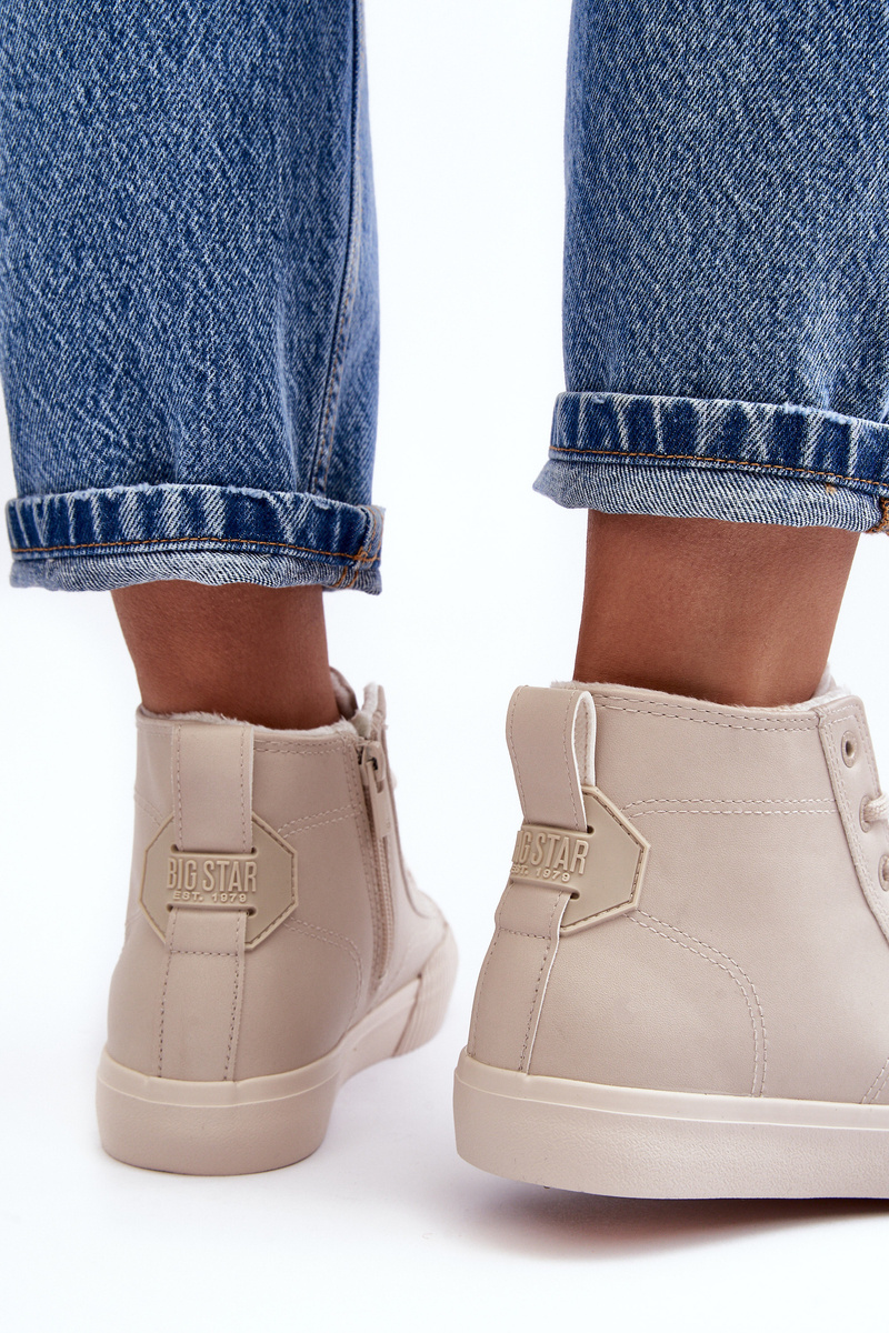 Жіночі кросівки бренду BIG STAR з верхом до щиколотки. Виготовлена з еко шкіри. Модель застібається на блискавку і додатково має шнурівку. Ззаду вони мають декоративний логотип бренду. Встановлюються на підошву з гумового матеріалу. Перегляньте всю нашу колекцію взуття BIG STAR. Вибираючи розмір, зверніться до таблиці розмірів.